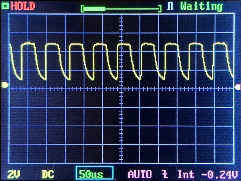 Then there’s the Ultrafire WF-602C flashlight, which has some of the worst PWM I’ve seen. It’s so bad that I used a post about it to explain PWM! Here are multiple timescales (10ms, 5ms, 2ms, 1ms, 0.5ms, 0.2ms) to make comparing this “worst” PWM light to the test light easier. That post also explains why I didn’t test the WF-602C at the usual 50us scale.