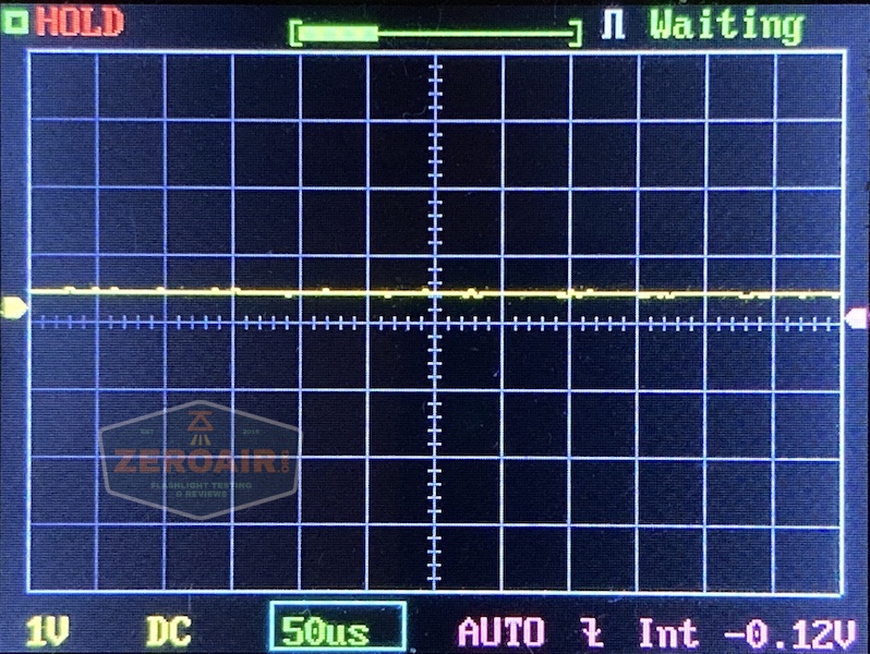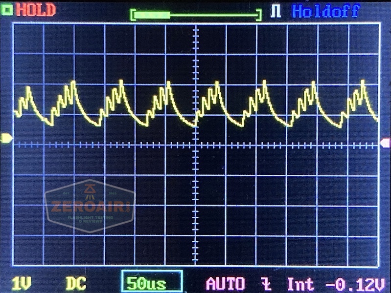 Output steps down from an initial 1660 lumens to over 1500 at 30s. In fact, the light stays over 1500 lumens (the official claim) for over 2 minutes. It does warm up while doing this! Once the light steps down, the output is incredibly flat for hours. Then there’s another stepdown, which lasts for under an hour, and then the light begins to decline in output. The switch warns the user of low voltage along the way. First green, then orange, then solid red, then flashing red. I stopped both of the tests seen below at random times but the cell voltage was (coincidentally) 2.52V each time. This is purely chance, and the light doesn’t seem to shut off.