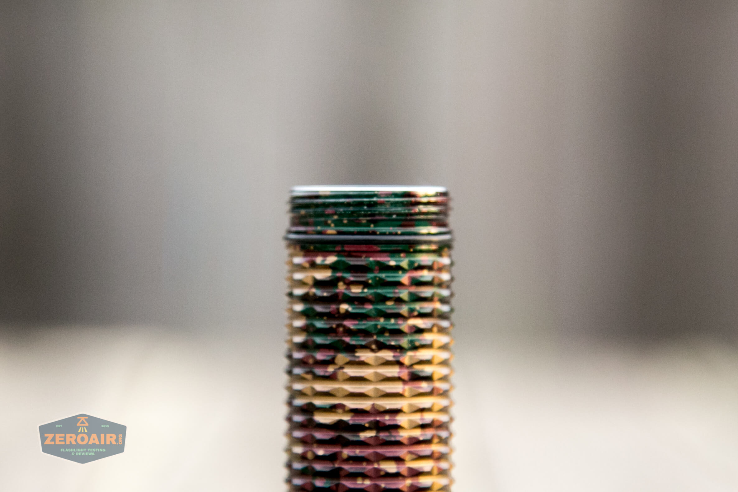 Check out that camo pattern! I would probably be inclined to refer to this as a “splatter” pattern. It’s certainly not any of the standard camo patterns, and many of the blobs of alternating color are just that – actual blobs. On the knurled body, it’s no big deal. But on the head, it’s somewhat noticeable. Not a problem at all for me, but something to notice if you’re a particular camo fan.