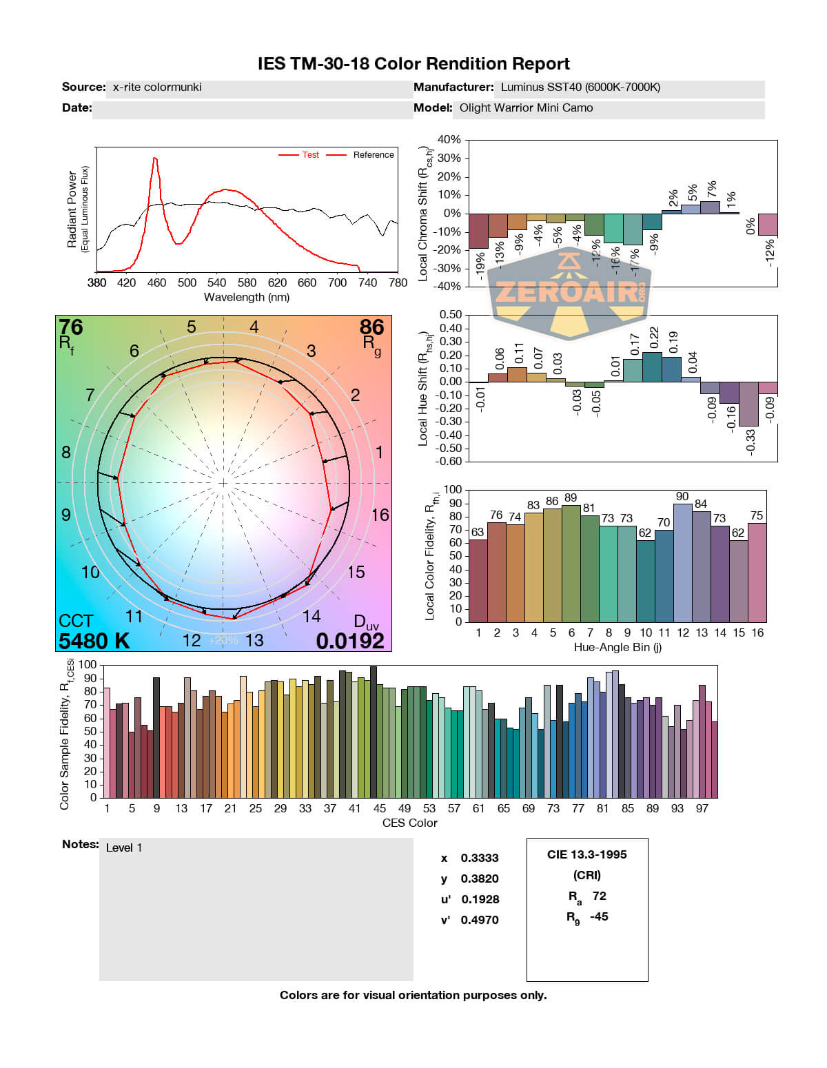 LED Color Report (CRI and CCT)