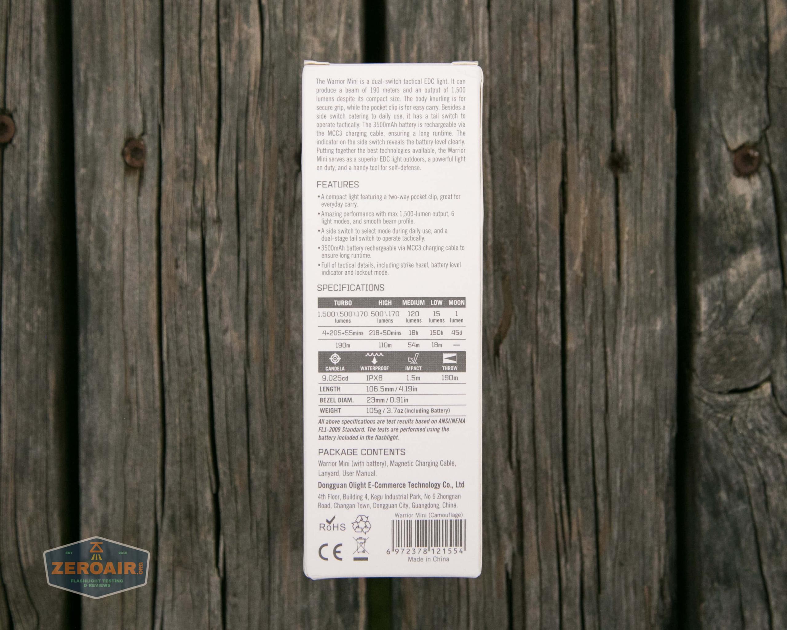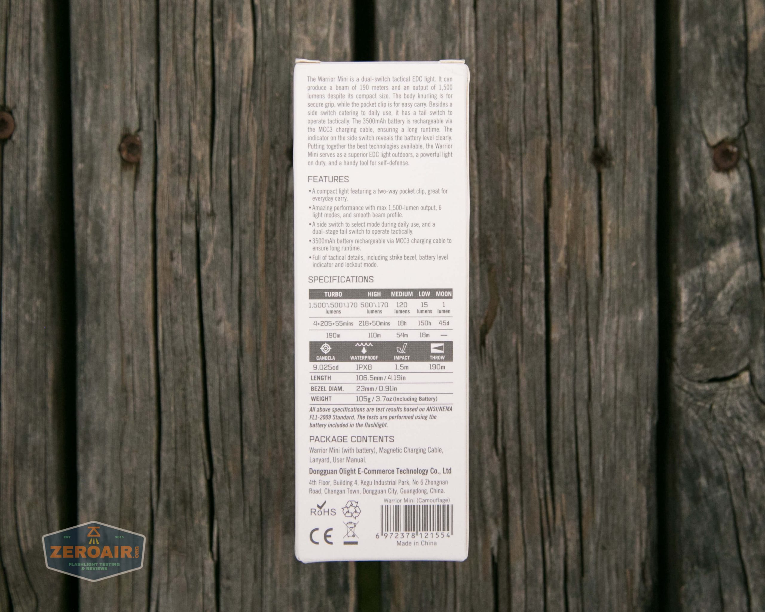 The Olight Warrior Mini is powered by a custom single lithium-ion cell. The appropriate cell is included – a customized 3500mAh 18650.