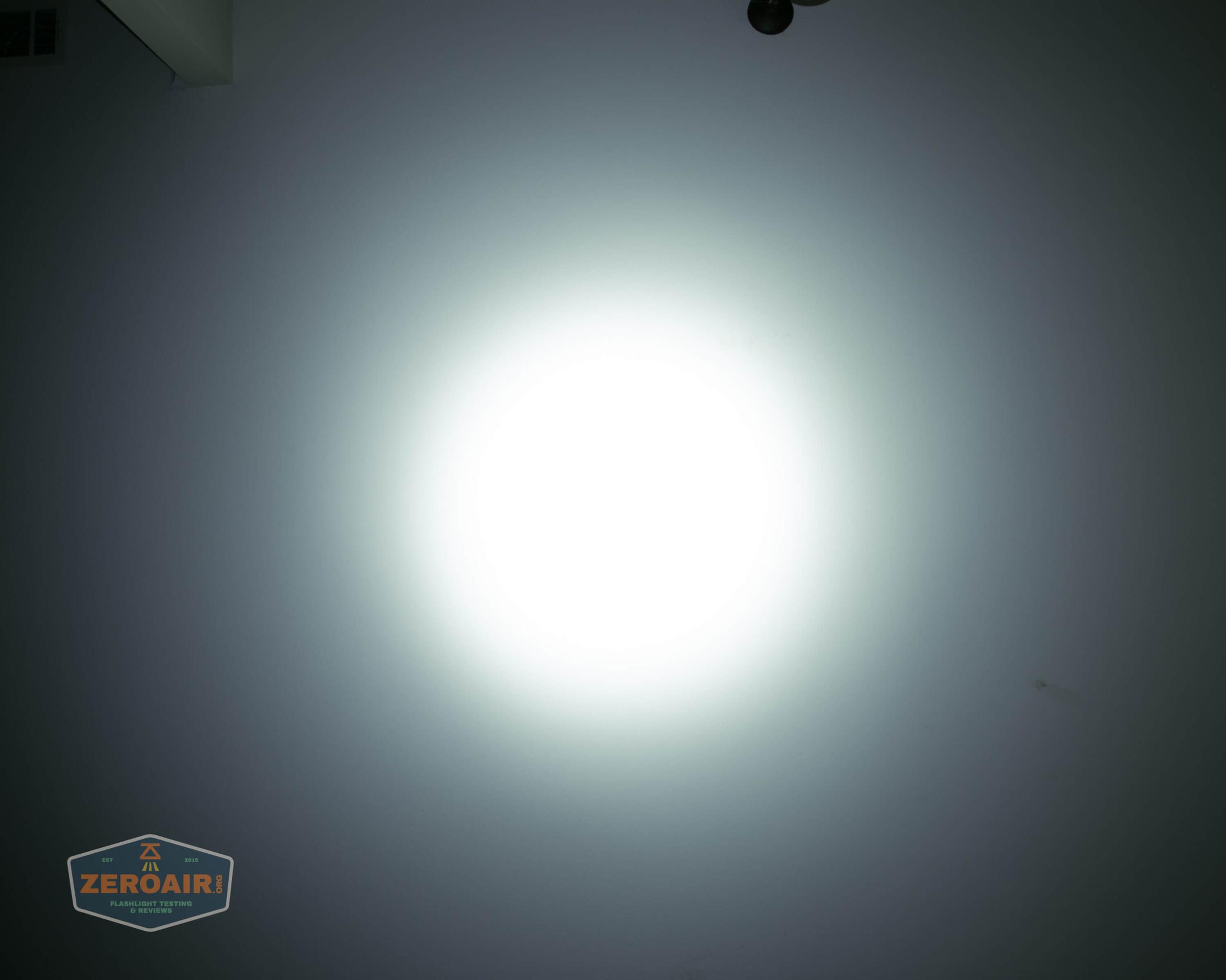 Output steps down from an initial 1660 lumens to over 1500 at 30s. In fact, the light stays over 1500 lumens (the official claim) for over 2 minutes. It does warm up while doing this! Once the light steps down, the output is incredibly flat for hours. Then there’s another stepdown, which lasts for under an hour, and then the light begins to decline in output. The switch warns the user of low voltage along the way. First green, then orange, then solid red, then flashing red. I stopped both of the tests seen below at random times, but the cell voltage was (coincidentally) 2.52V each time. This is purely by chance, and the light doesn’t seem to shut off.