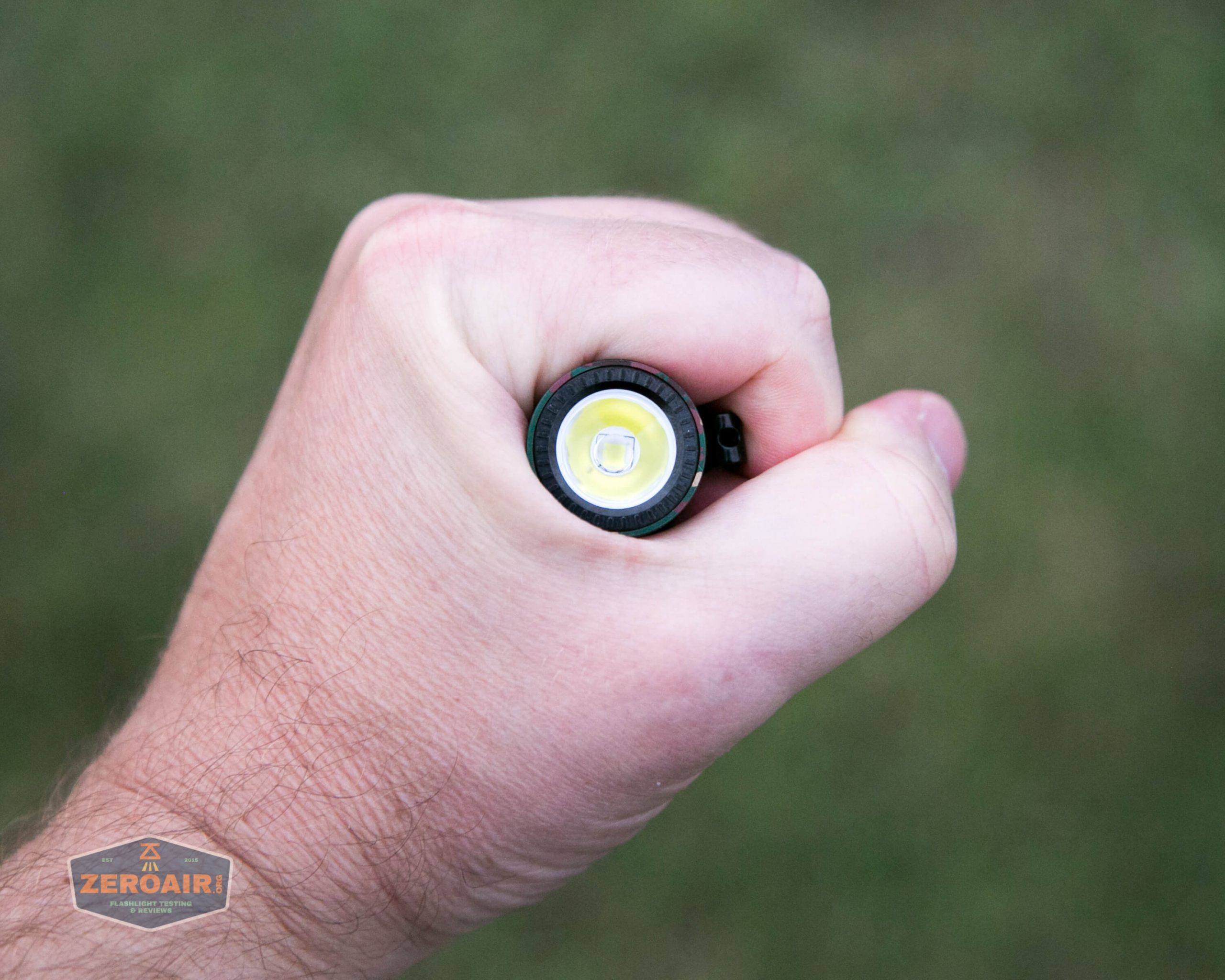I don’t usually like these two-way clips and this one is particularly egregious – carrying this light in the “bezel down” orientation will leave more than half the light out of the pocket. That said, the “normal” orientation for this clip is just fine, and the “second way” of it doesn’t hinder things too much. So just plan to carry it as a bezel-up light.