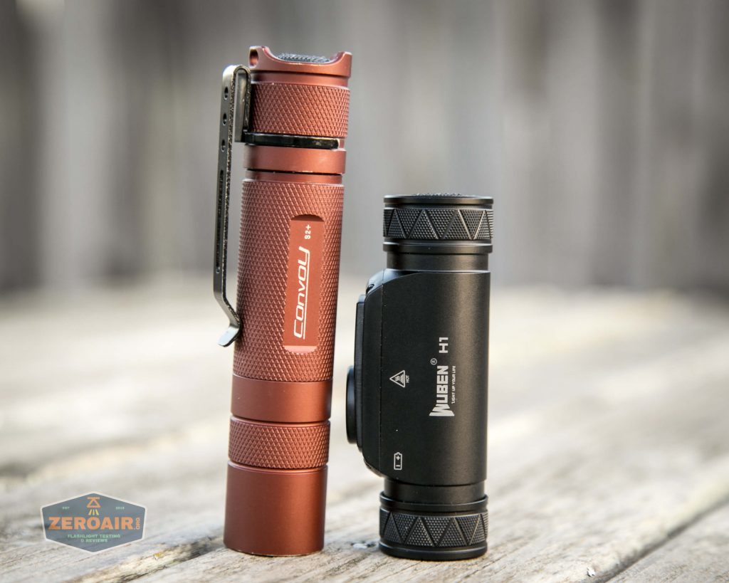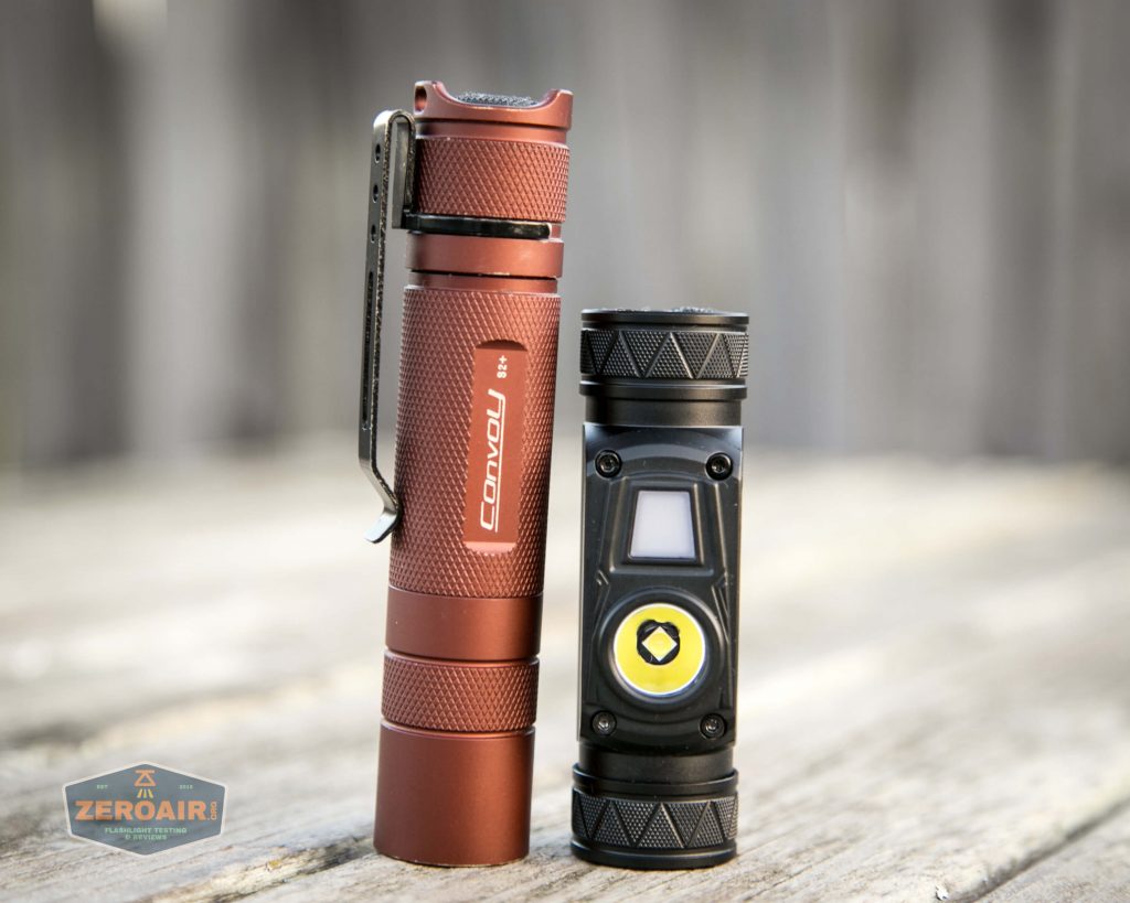 Here’s the test light with the venerable Convoy S2+. Mine’s a custom “baked” edition Nichia 219b triple. A very nice 18650 light.