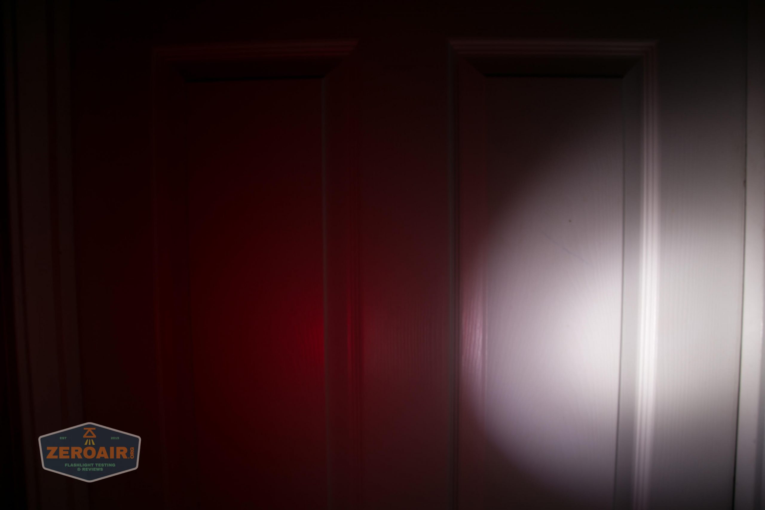 The main emitter is an Osram P9, with a small smooth reflector. It’s cool white. The secondary emitter area is to the right of the main emitter in the photo below. Behind this opaque cover is a neutral white, red, and blue emitter selection. These are of course all flood and details about them aren’t included.