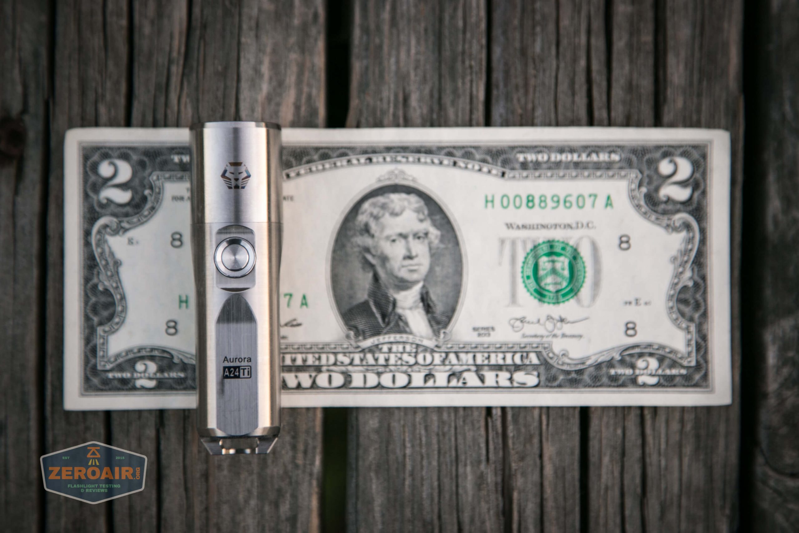 And here’s the light beside my custom-engraved TorchLAB BOSS 35, an 18350 light. I reviewed the aluminum version of that light in both 35 and 70 formats.