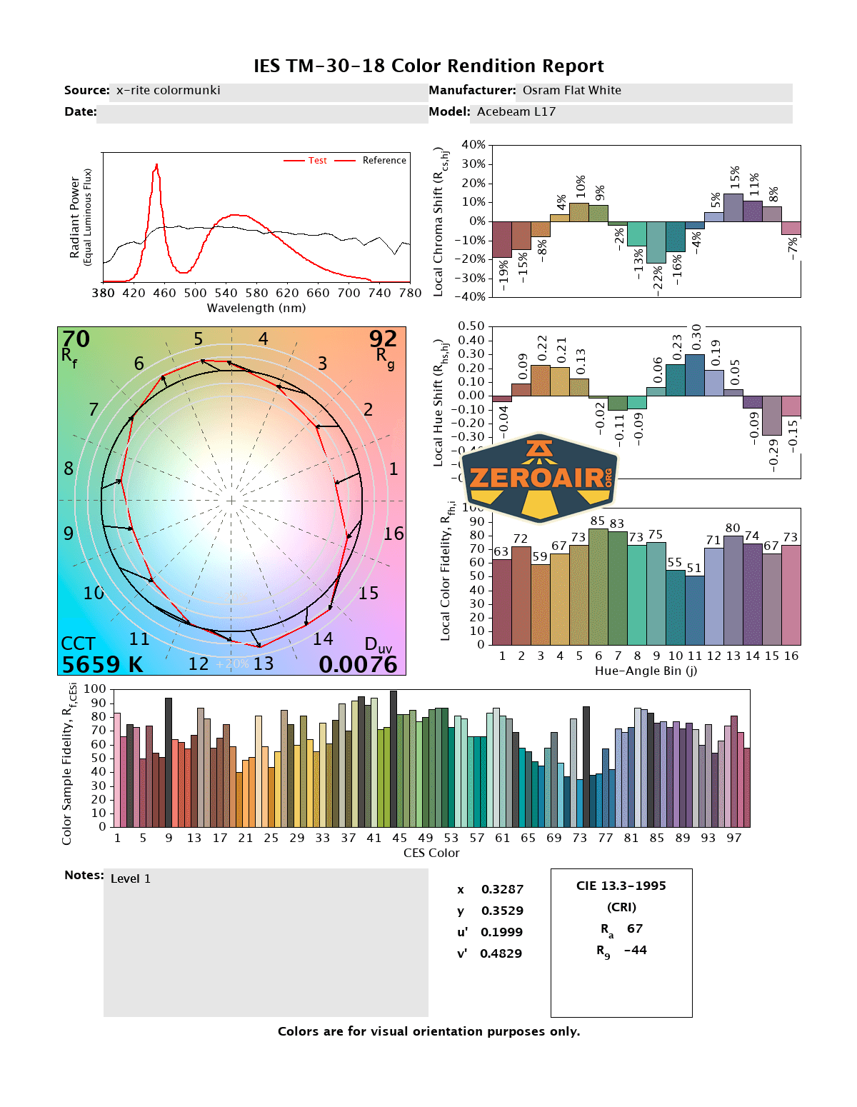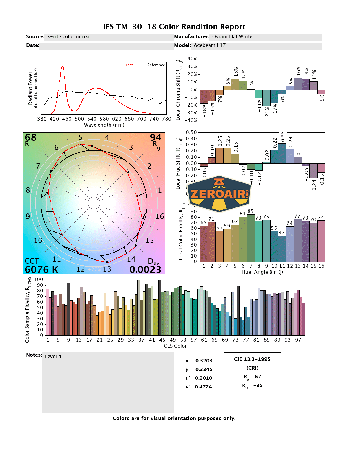 LED Color Report (CRI and CCT)