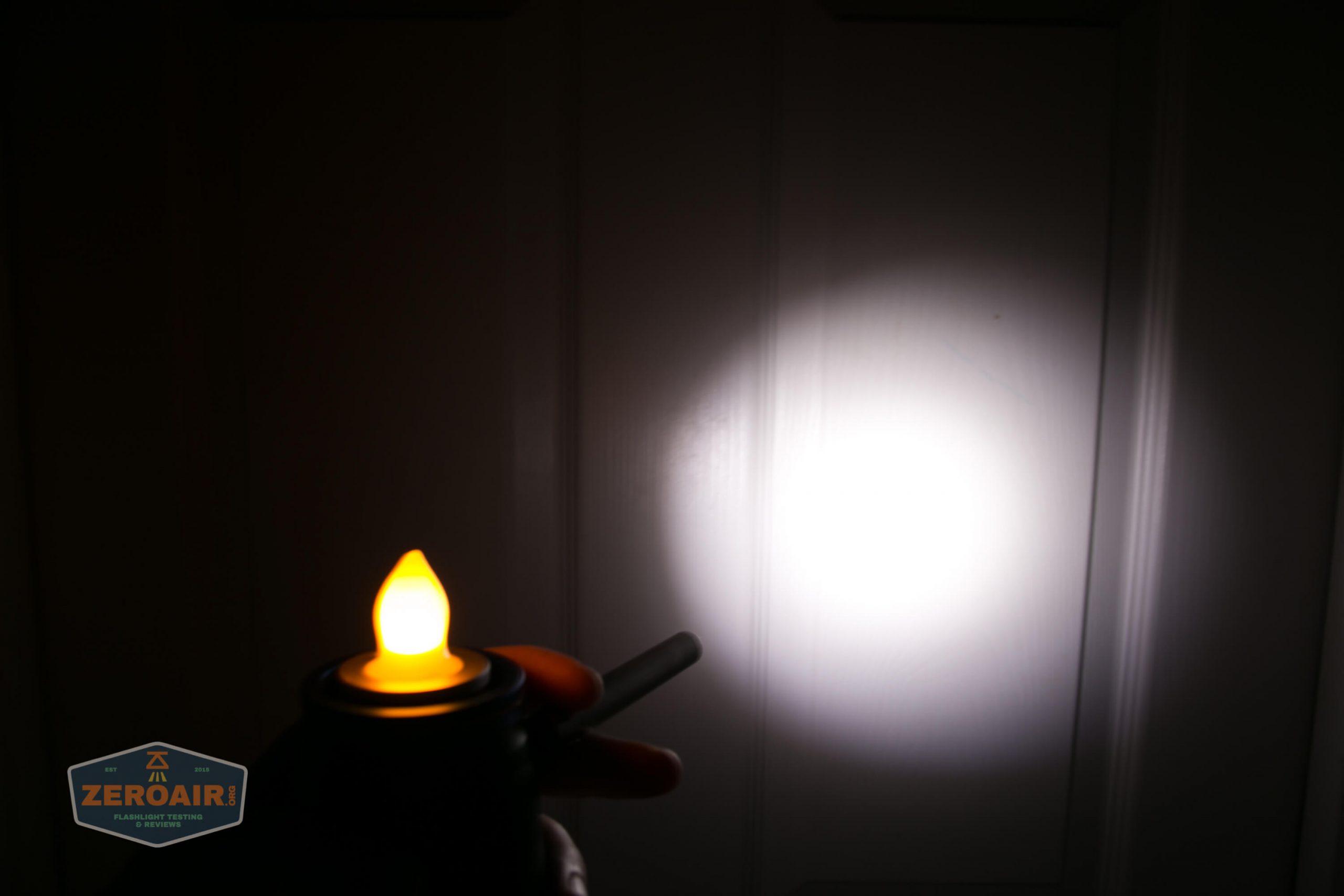 These beamshots aren’t really all that useful…. the lantern doesn’t project all that well from my floor to the ceiling. But this does give you some idea. First is the Flame Lamp.