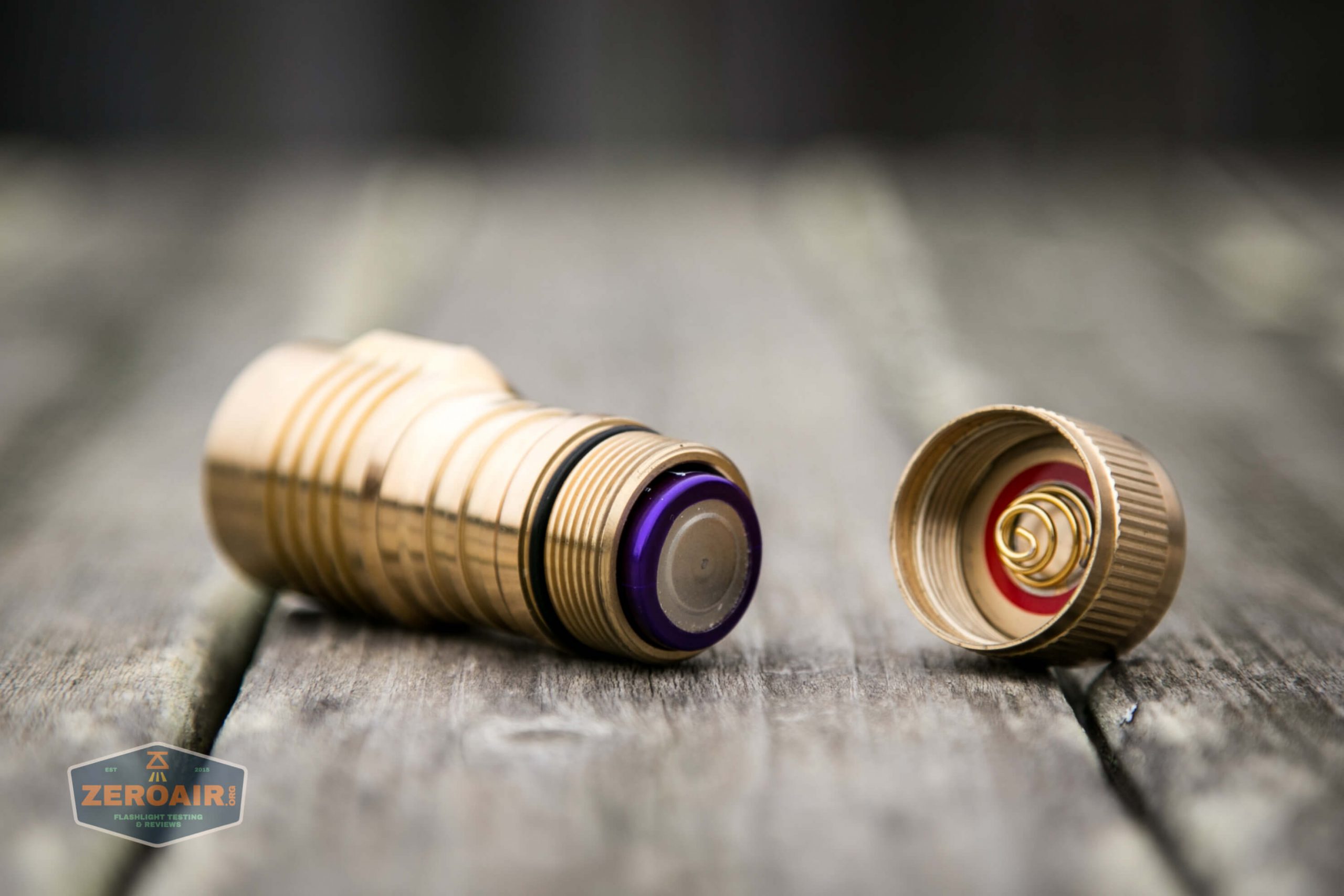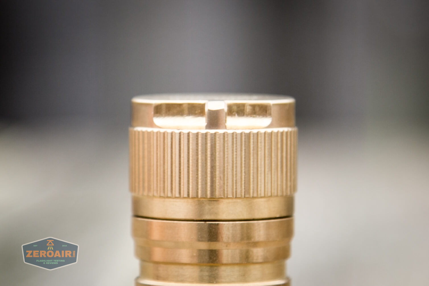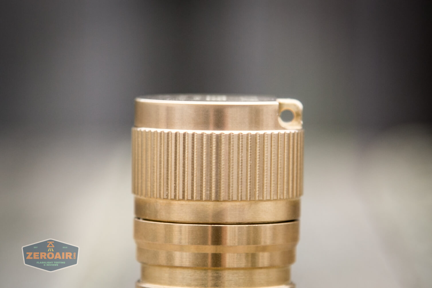 The tailcap has some branding, but it’s very faint on this brass version. For the record, it says “High Power Illumination | Emisar | D4V2 CuZn”