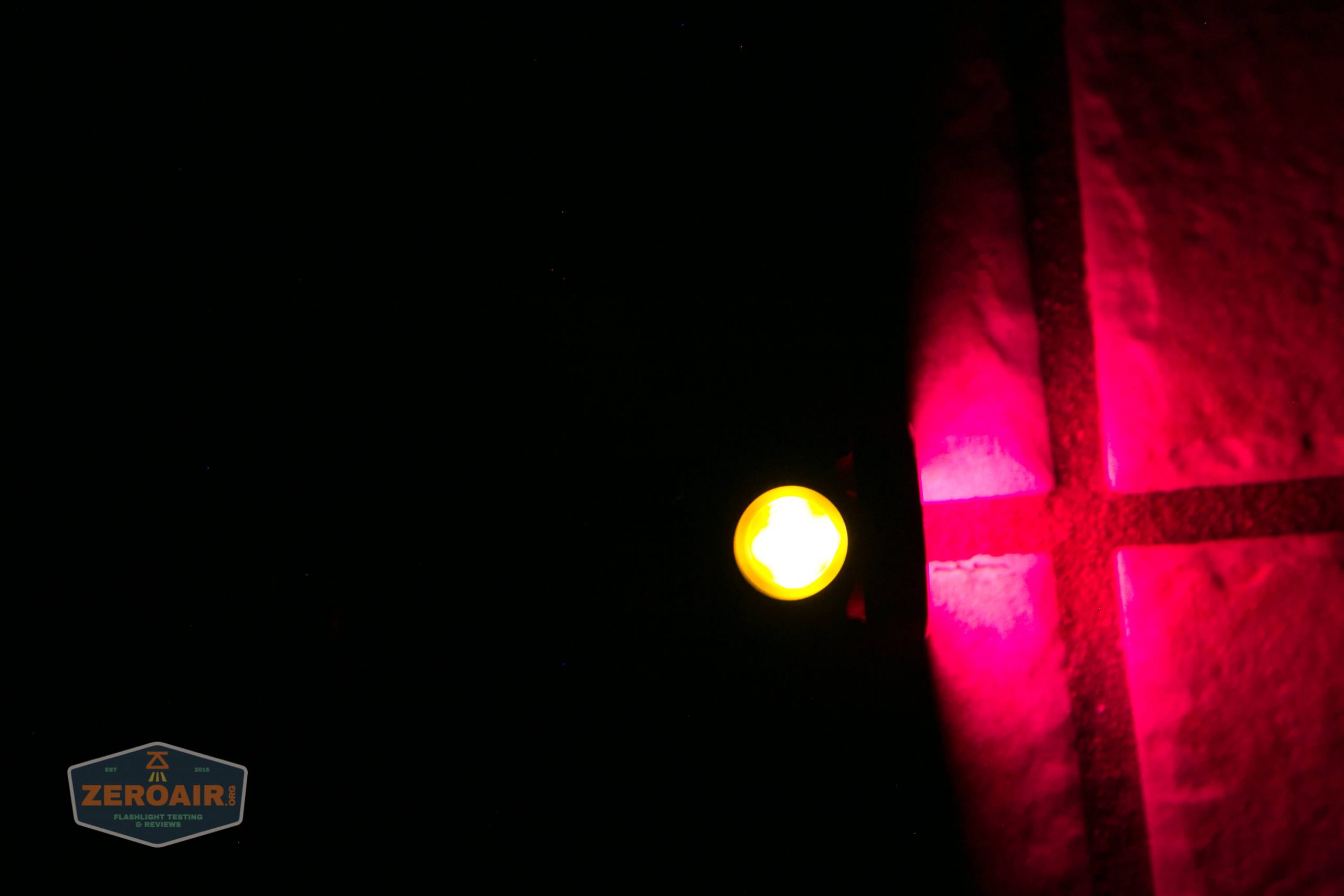 Turbo steps down quite quickly, and never really gets all that hot. That’s probably good for these (shall we say “fragile”?) emitters. Output holds steady thereafter. I typically don’t experience LVP on Anduril lights…. maybe I am just not waiting long enough. But it’s there, and the light steps down too, so you’ll notice. I should mention that this “Turbo” is the output achieved when double clicking from an on state.