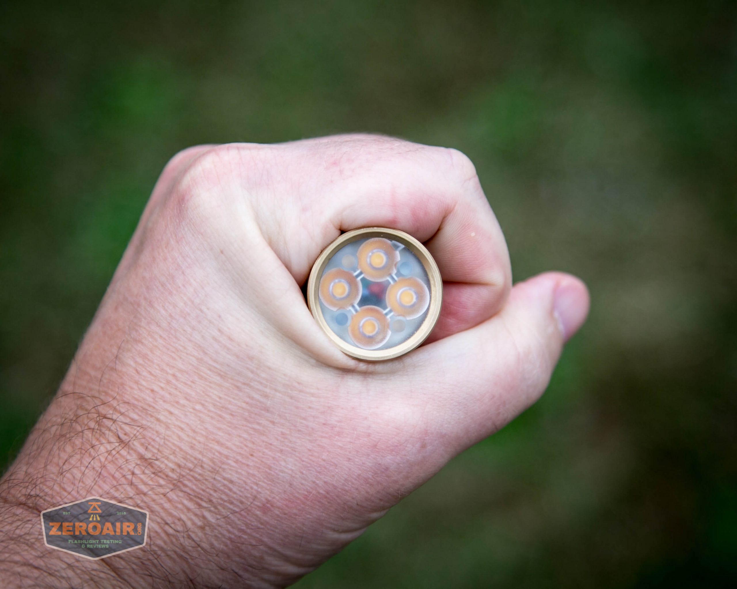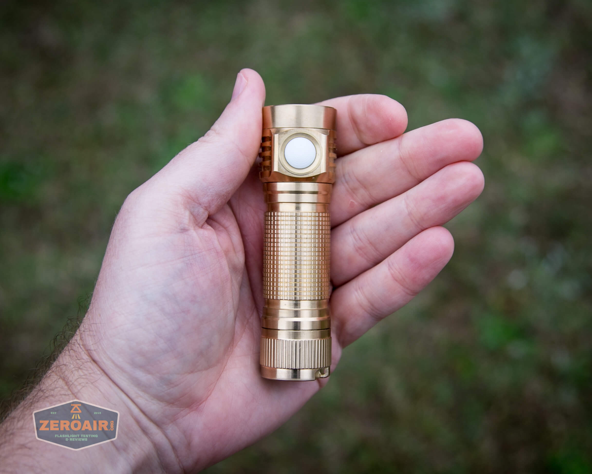 This is a super fun light, even when it’s off. The RGB secondaries are enormously entertaining (and also very active and bright, if you wish). As far as output with the E21A emitters – it’s probably not going to be quite as bright as you were expecting, but it’s such a pleasant output that it likely won’t matter. The brass is great and makes the D4V2 a nice pocket chunk.