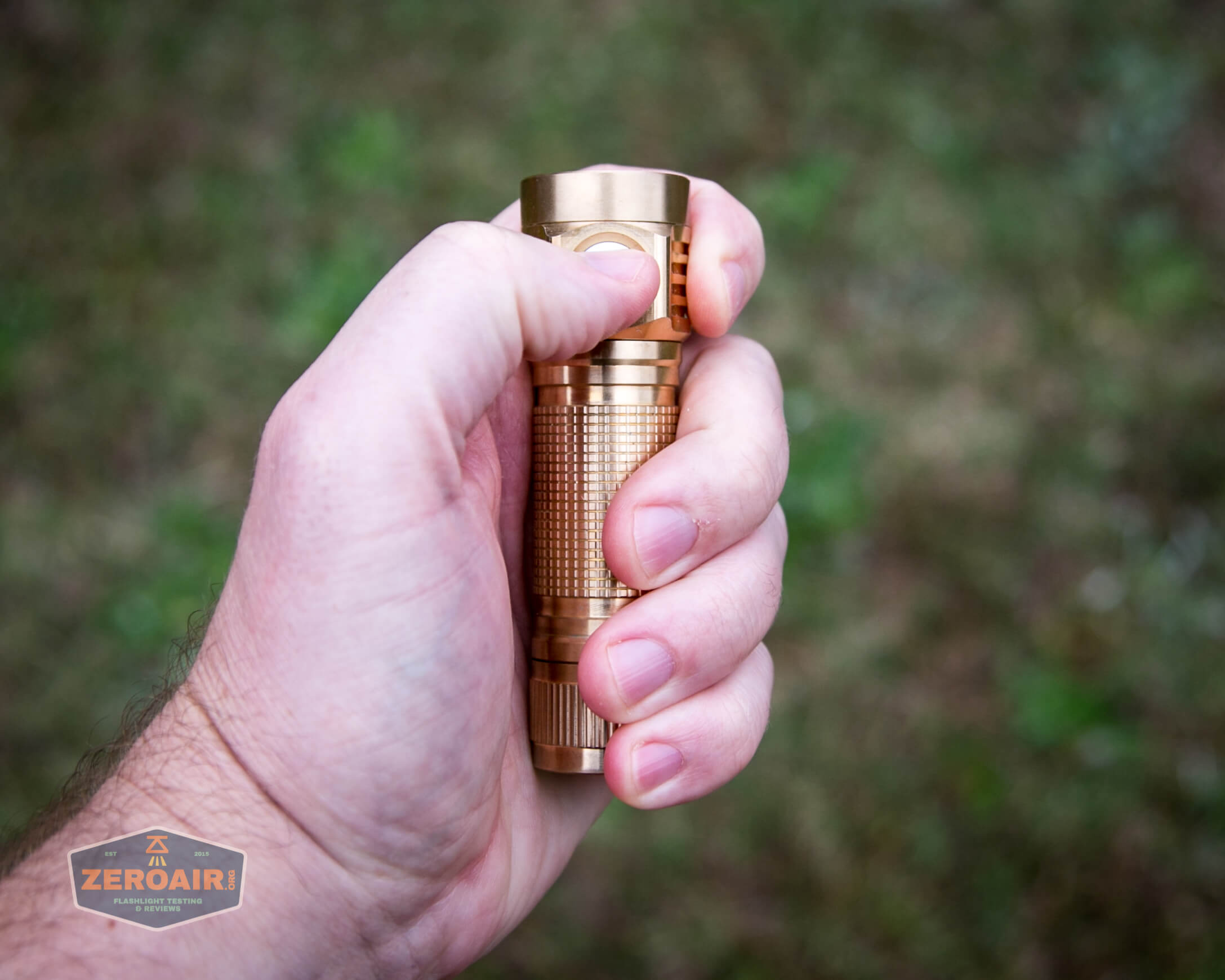The magnet in these tailcaps won’t really hold the light horizontally – the brass is just too heavy.