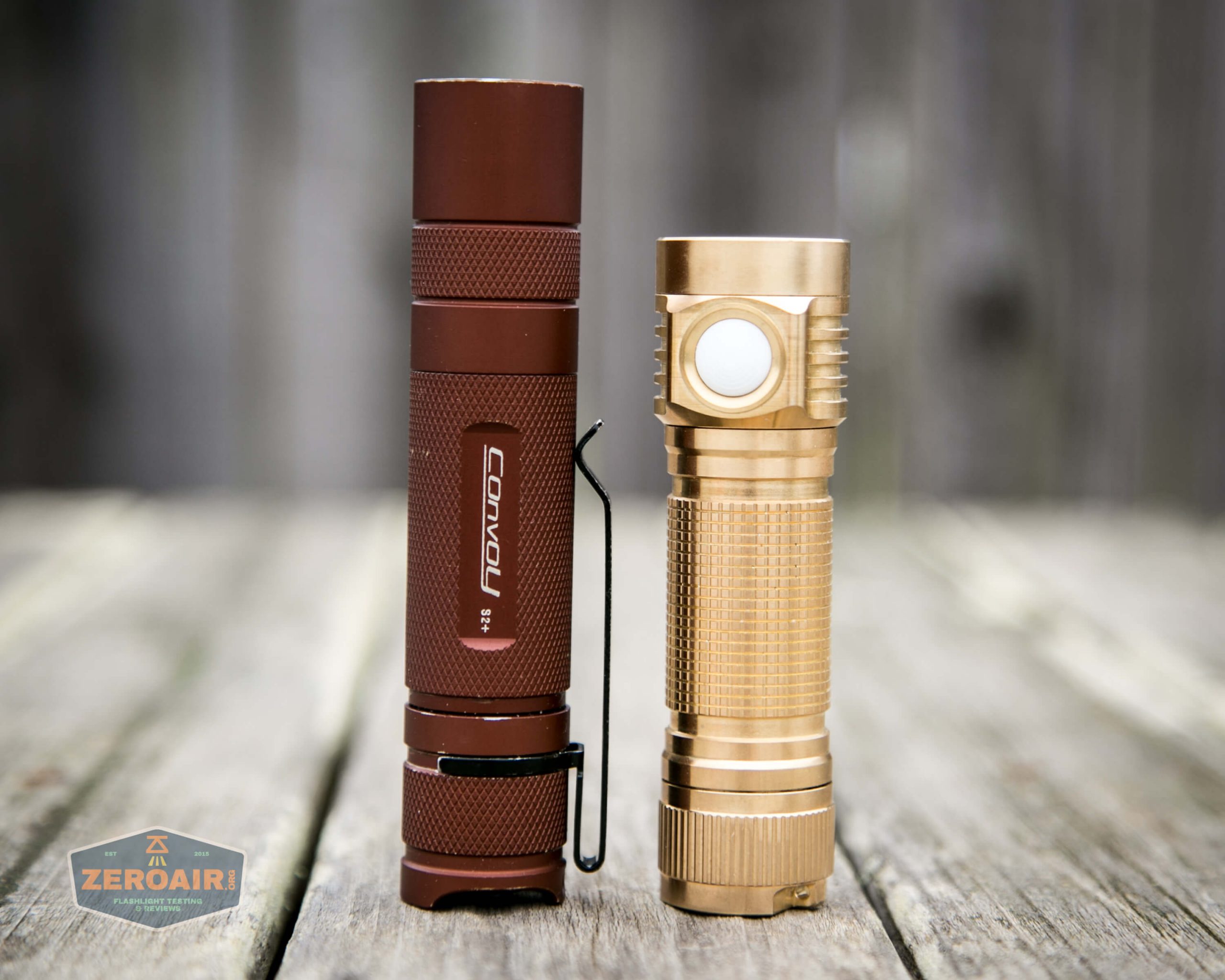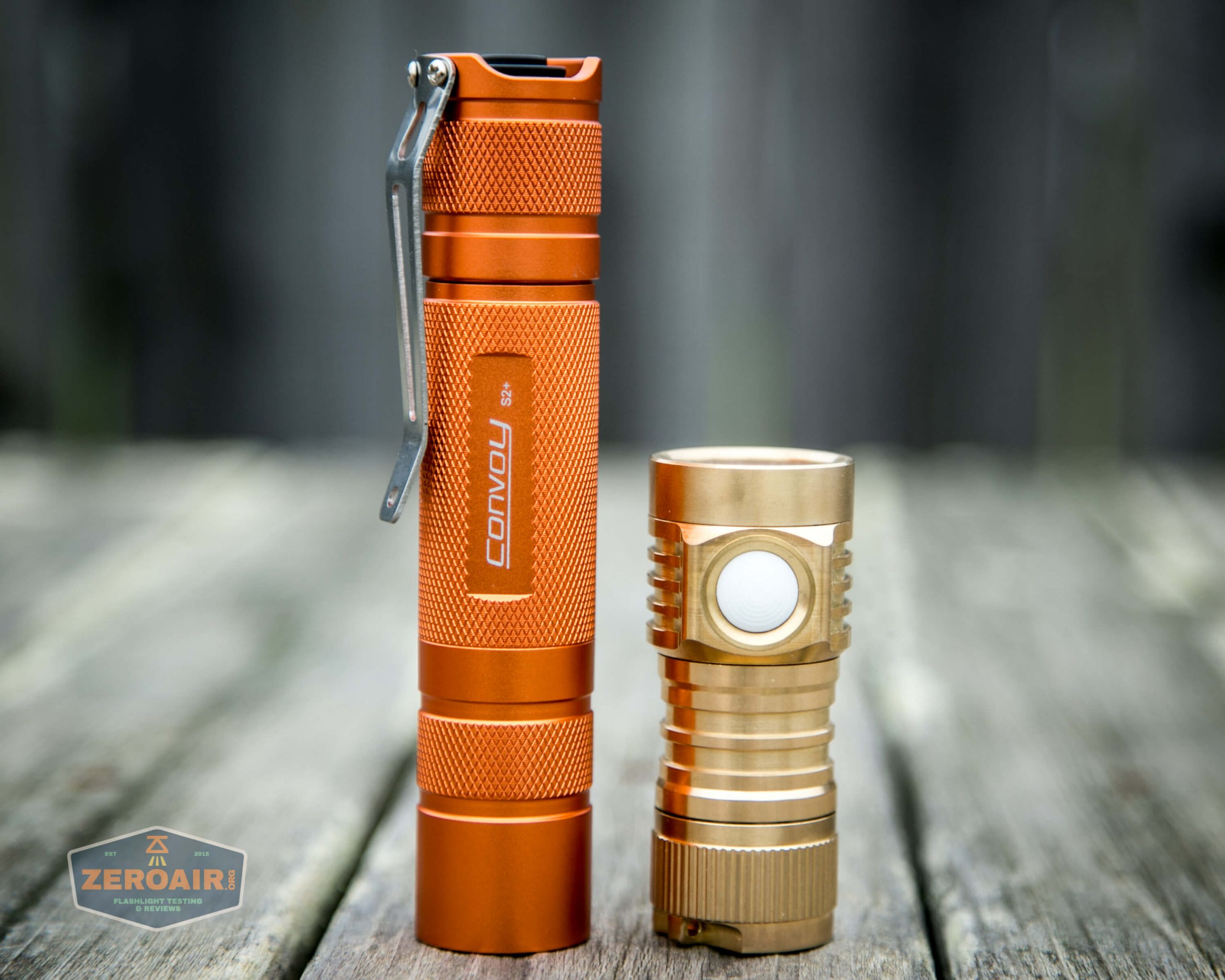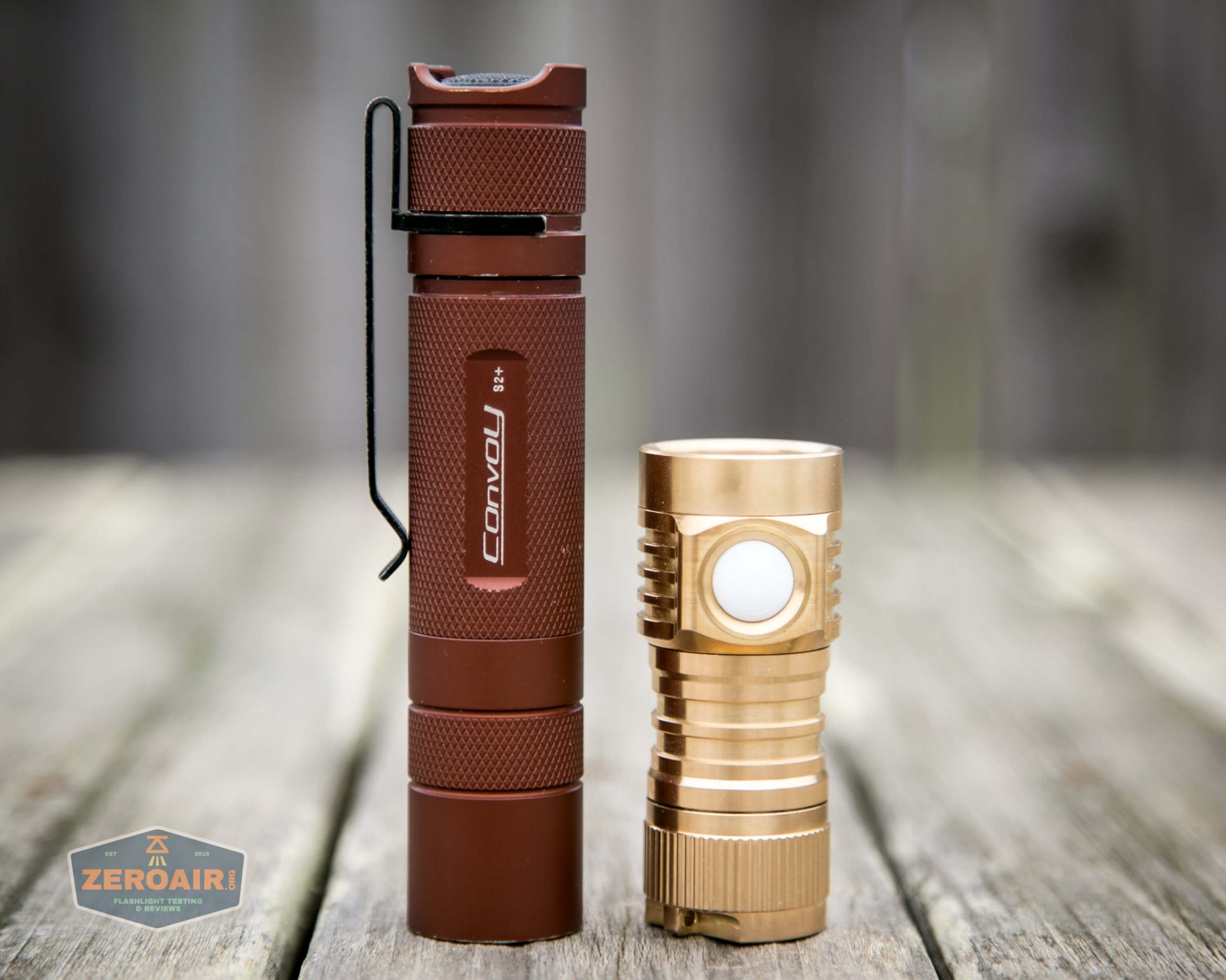 Here’s the test light with the venerable Convoy S2+. Mine is a custom “baked” edition Nichia 219b triple. A very nice 18650 light!