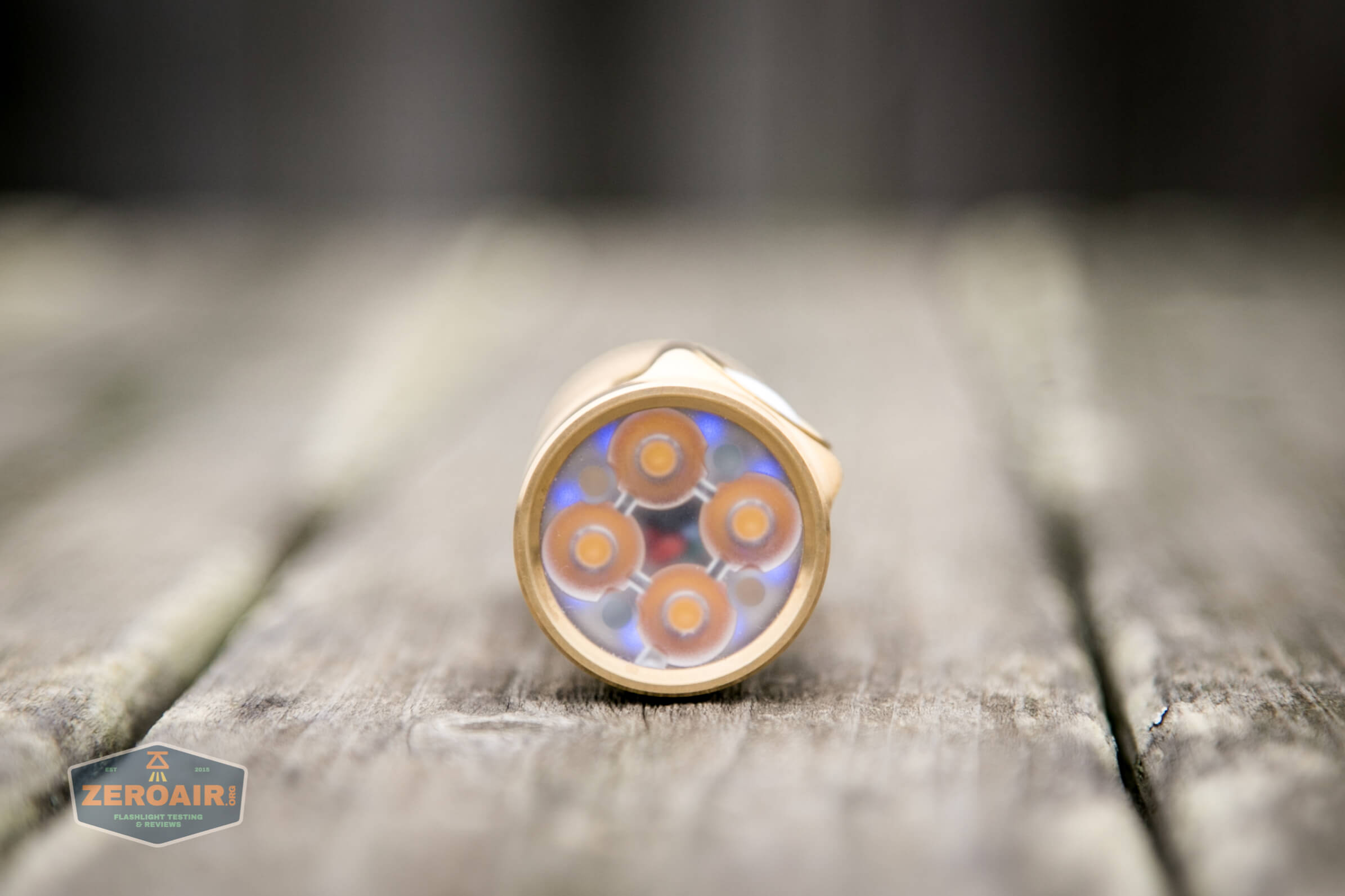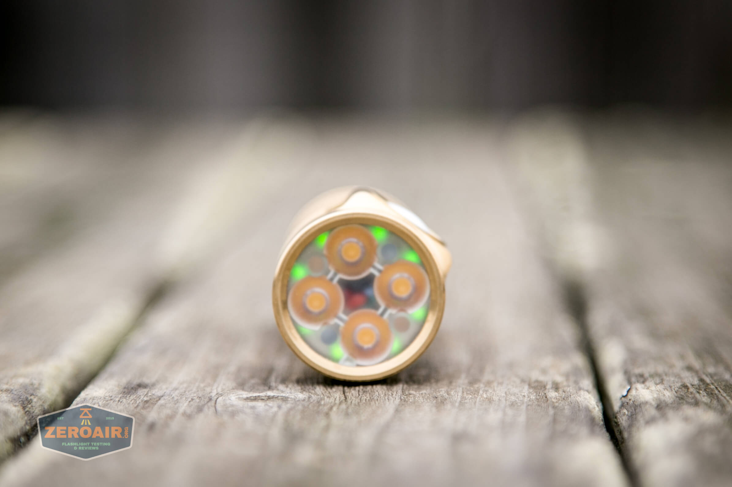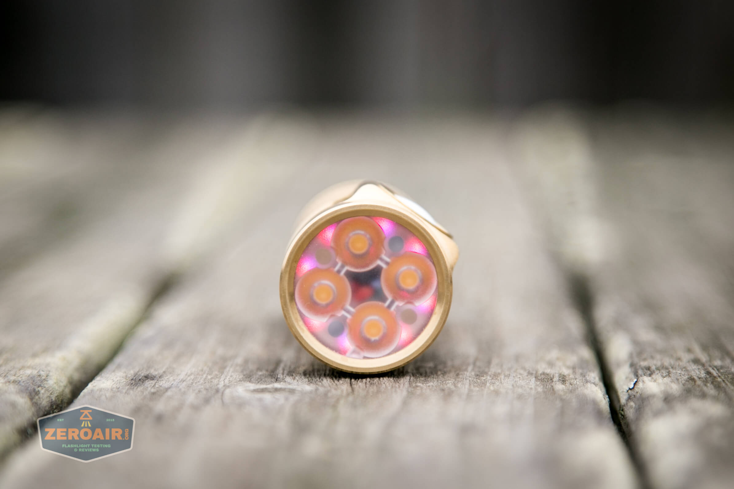 The emitters in my D4V2 are Nichia E21A in a temperature of 4500K. There are four of them, making this a “quad.” The E21A really works better in warmer emitters. When I purchased 4500K was what was on offer – now I believe there are some warmer options (possibly all the way down to 2000K.) It’s also possible to even mix emitters, for example 3500K and 2700K, which could add to the rosy tint. So if rosy tint is something you desire, consider asking for a temperature mix!