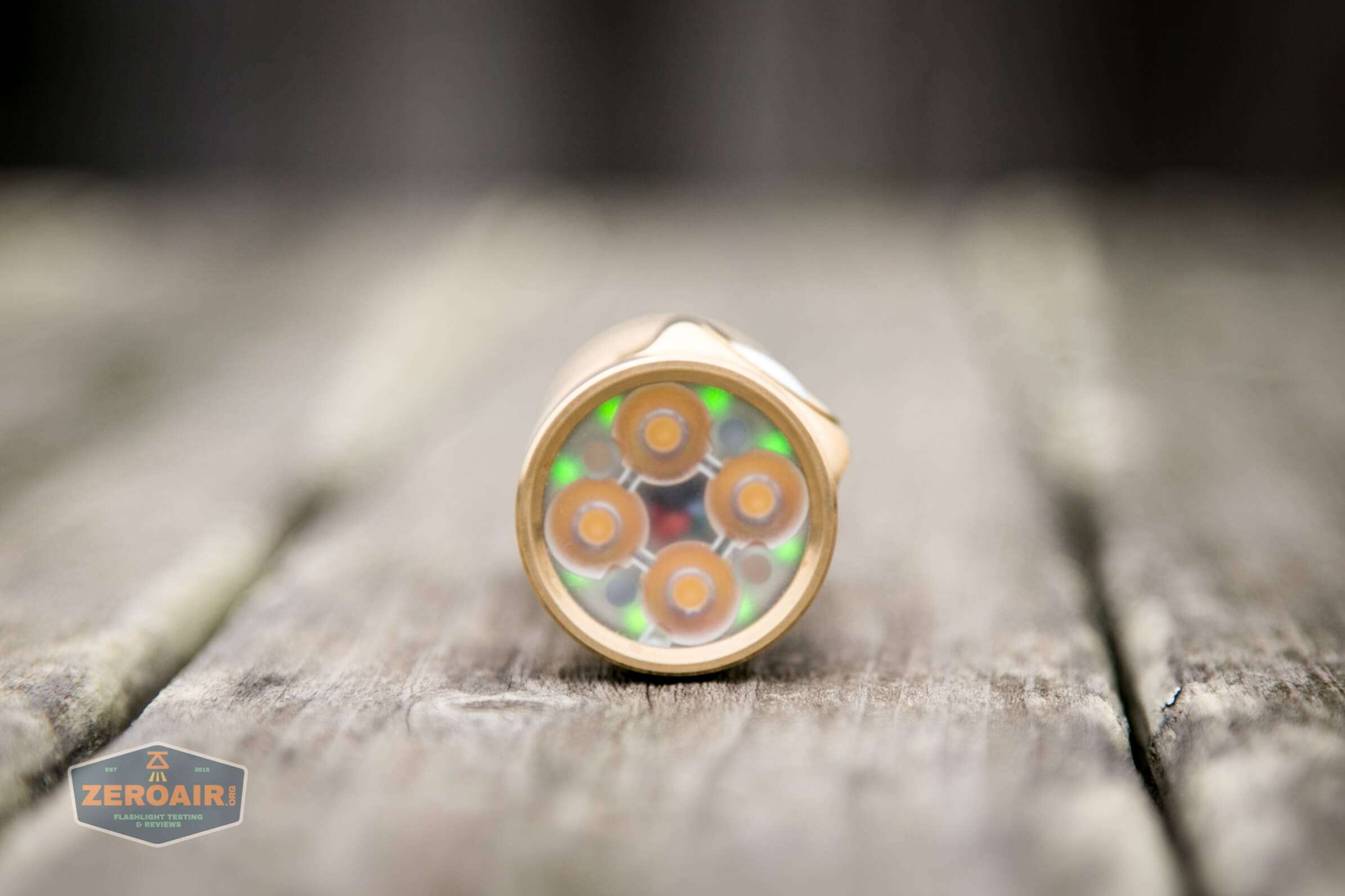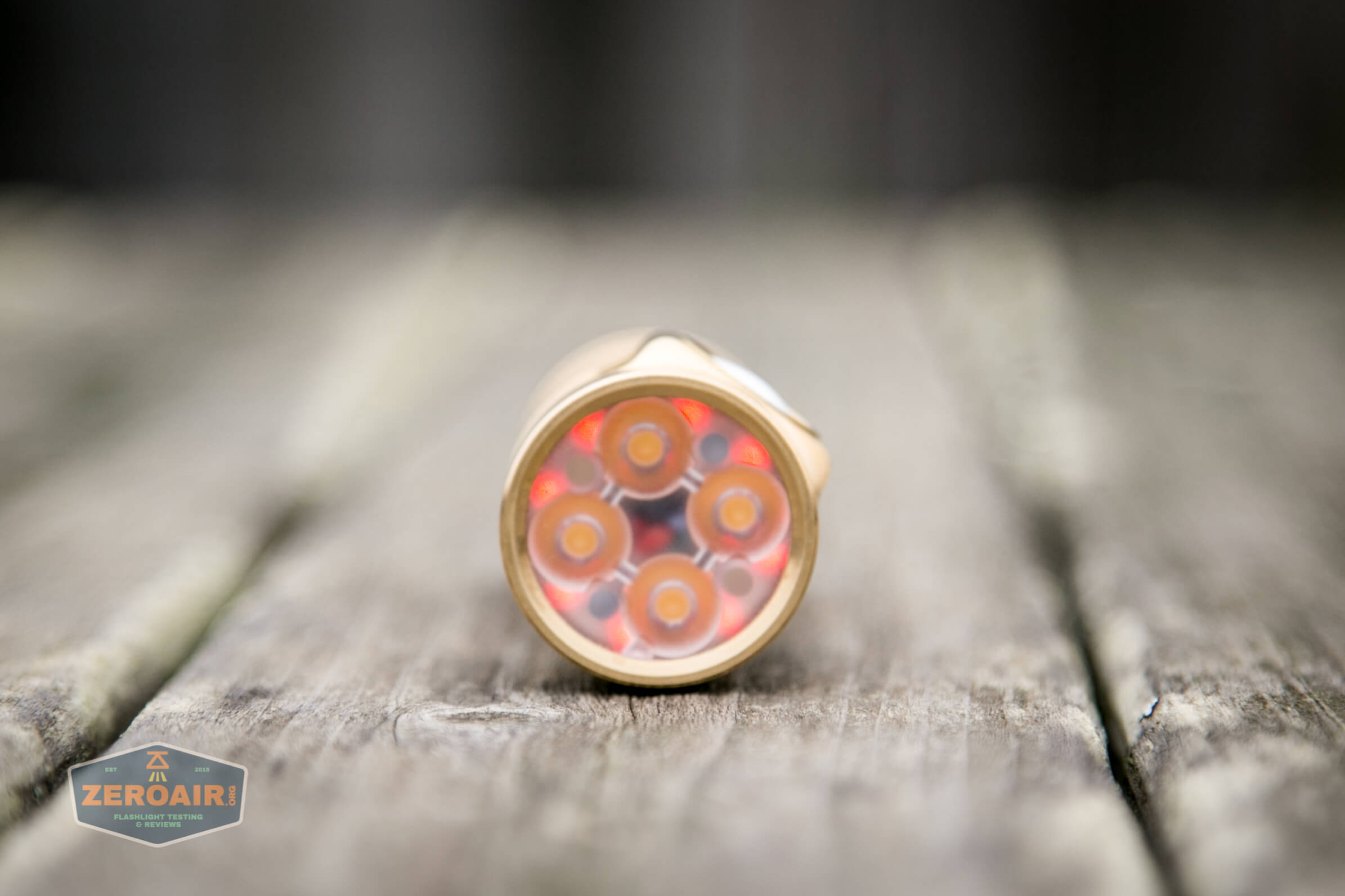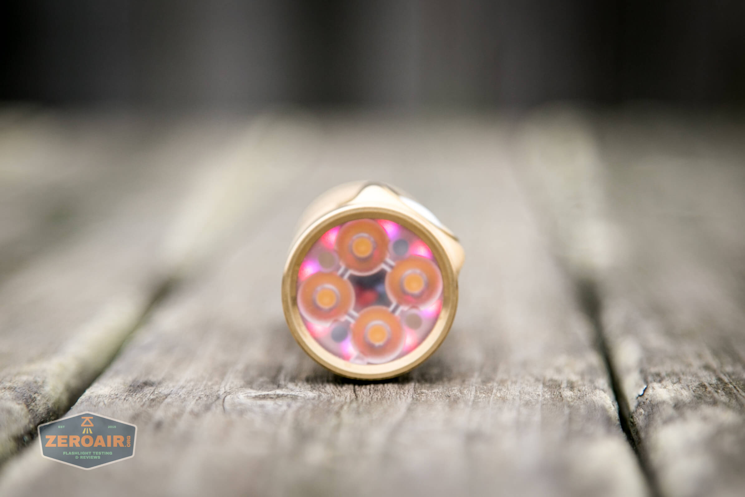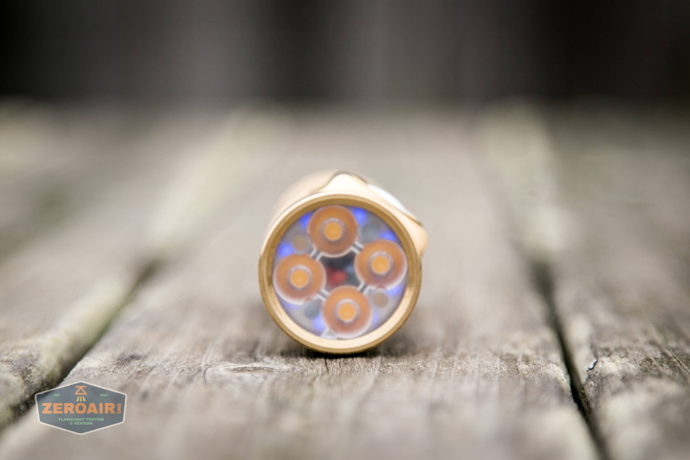 The emitters in my D4V2 are Nichia E21A in a temperature of 4500K. There are four of them, making this a “quad.” The E21A really works better in warmer emitters. When I purchased 4500K was what was on offer – now I believe there are some warmer options (possibly all the way down to 2000K.) It’s also possible to even mix emitters, for example 3500K and 2700K, which could add to the rosy tint. So if rosy tint is something you desire, consider asking for a temperature mix!