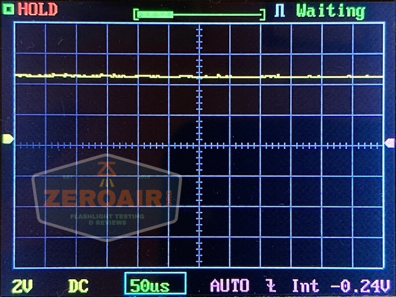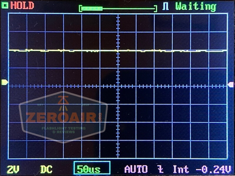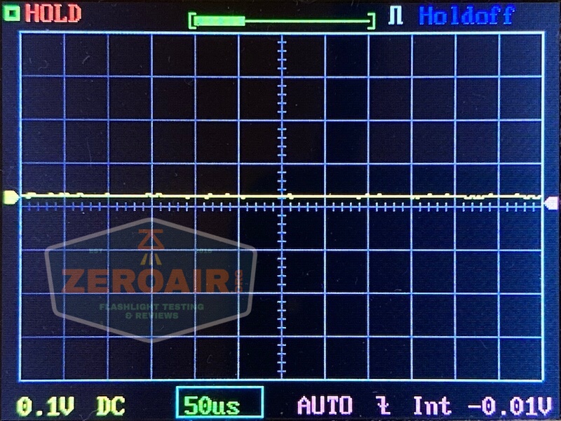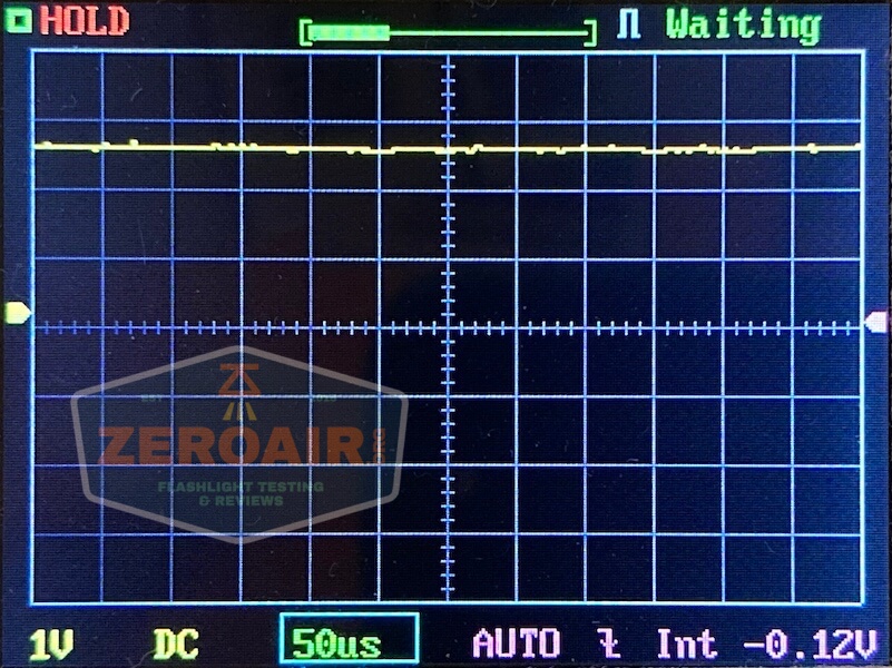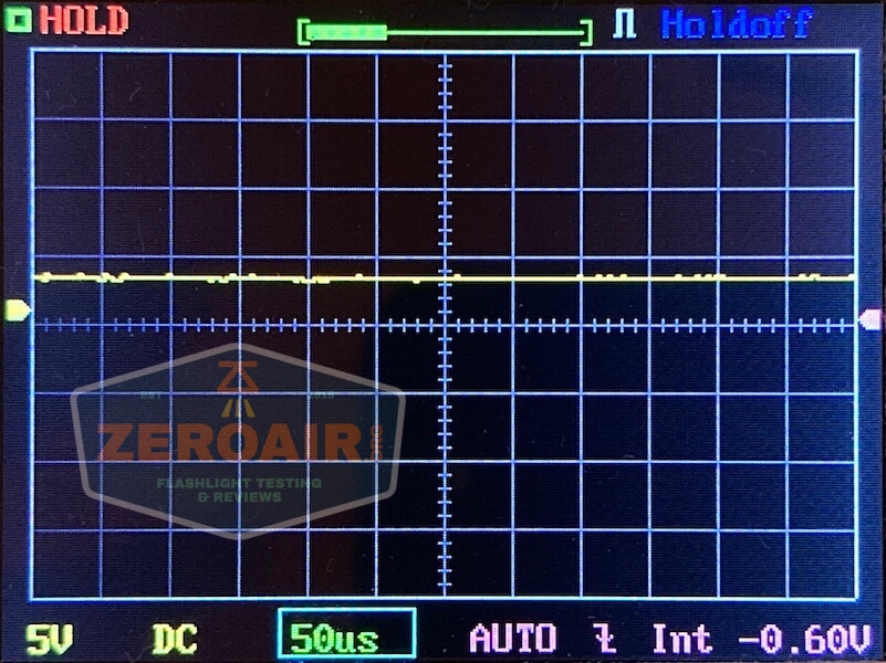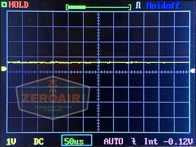 First is the lowest mode on the ramping part of the user interface. Then are the eight stepped modes. This is an interesting thing. All my other Andúril lights specifically have PWM. This D4V2 does not have PWM. That’s because this E21A D4V2 gets fitted with the linear driver mentioned above, and a linear driver means there is no PWM! Other D4V2 lights (that don’t have E21A emitters) will have the default Anduril driver, which does have PWM.