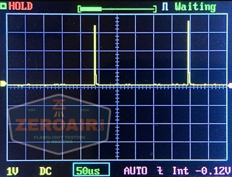 Then there’s the Ultrafire WF-602C flashlight, which has some of the worst PWM I’ve seen. It’s so bad that I used a post about it to explain PWM! Here are multiple timescales (10ms, 5ms, 2ms, 1ms, 0.5ms, 0.2ms) to make comparing this “worst” PWM light to the test light easier. That post also explains why I didn’t test the WF-602C at the usual 50us scale.