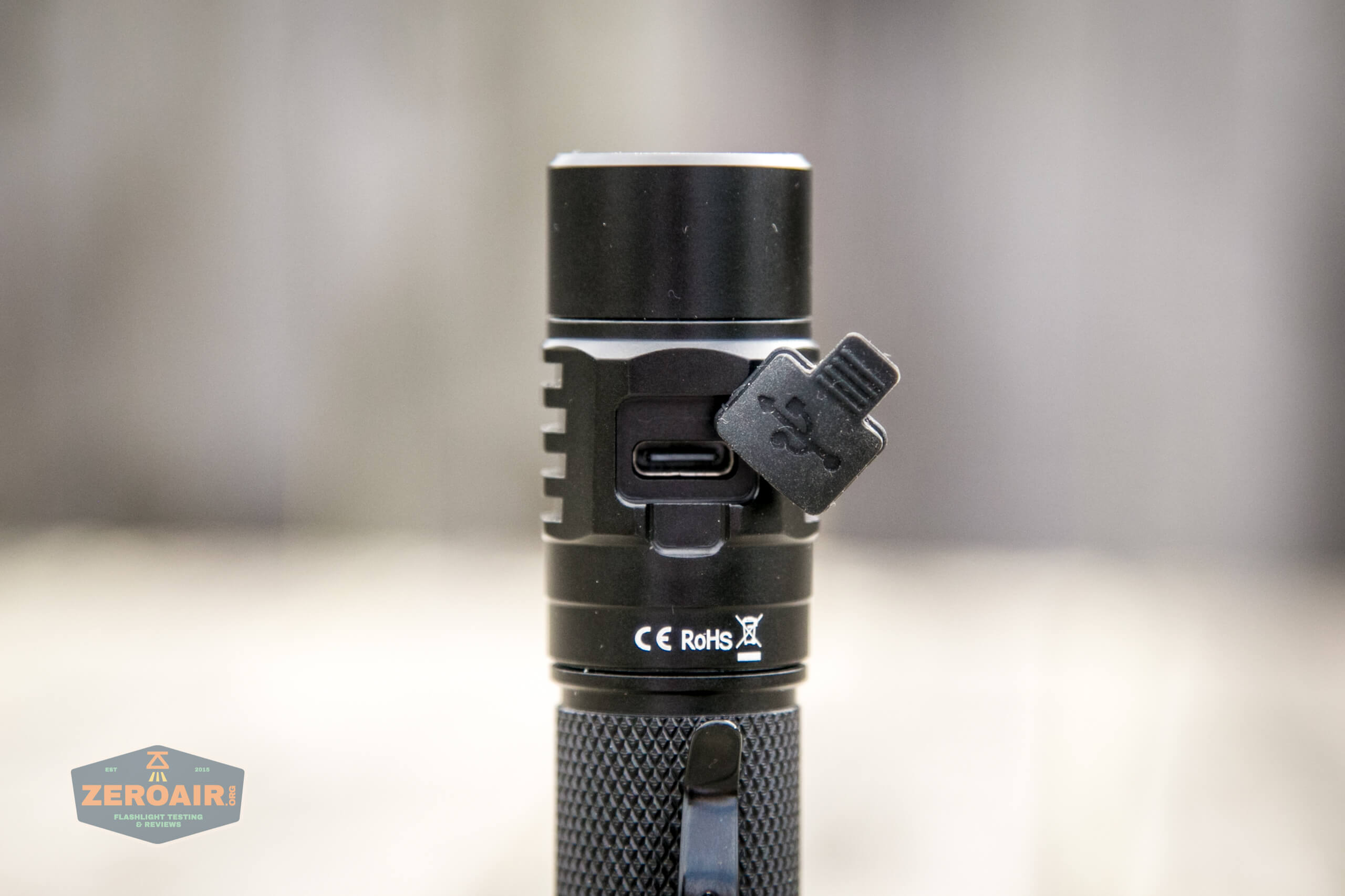 A single switch controls the SC31 Pro. This switch is an indicating e-switch and bigger than is typical on this type of light. It’s also very textured, and quite easy to differentiate from the charge port cover (which is on the opposite side of the head.)