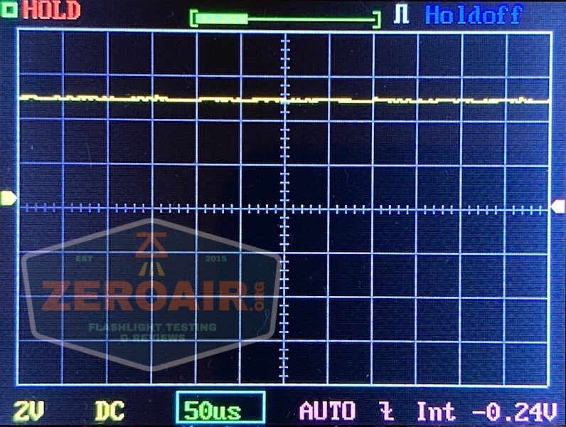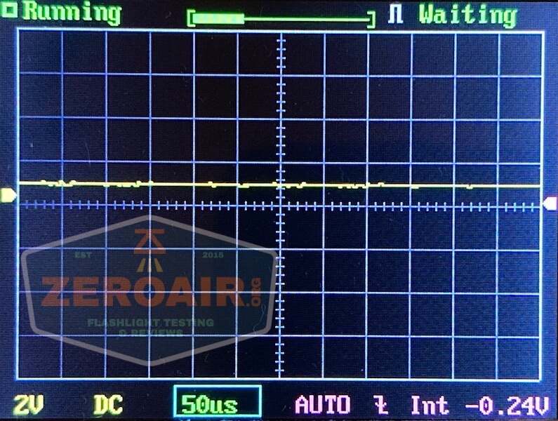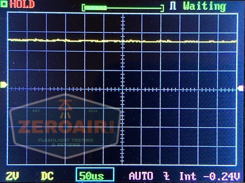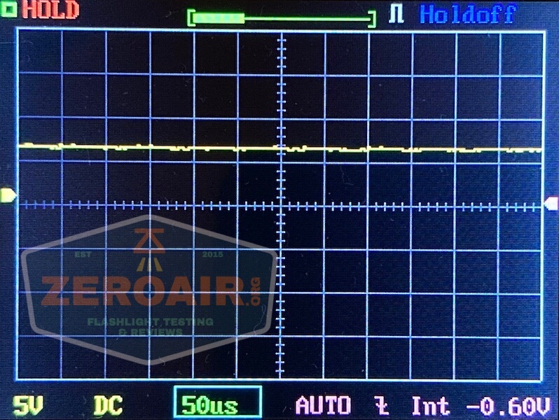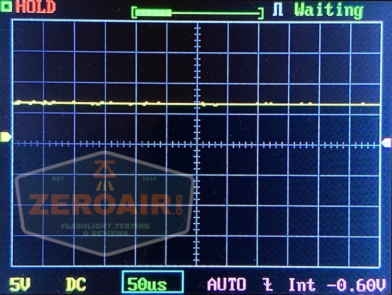 Then there’s the Ultrafire WF-602C flashlight, which has some of the worst PWM I’ve seen. It’s so bad that I used a post about it to explain PWM! Here are multiple timescales (10ms, 5ms, 2ms, 1ms, 0.5ms, 0.2ms) to make comparing this “worst” PWM light to the test light easier. That post also explains why I didn’t test the WF-602C at the usual 50us scale.