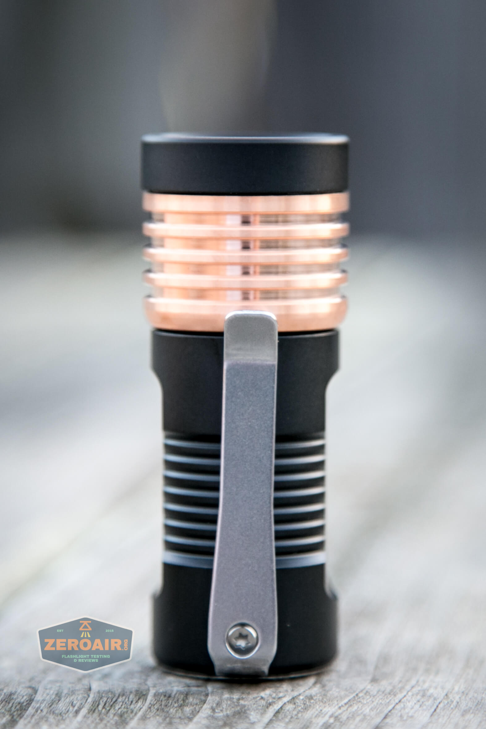 There’s a good bit of copper exposed here – this is really the lineage of the Manker E14 series lights.
