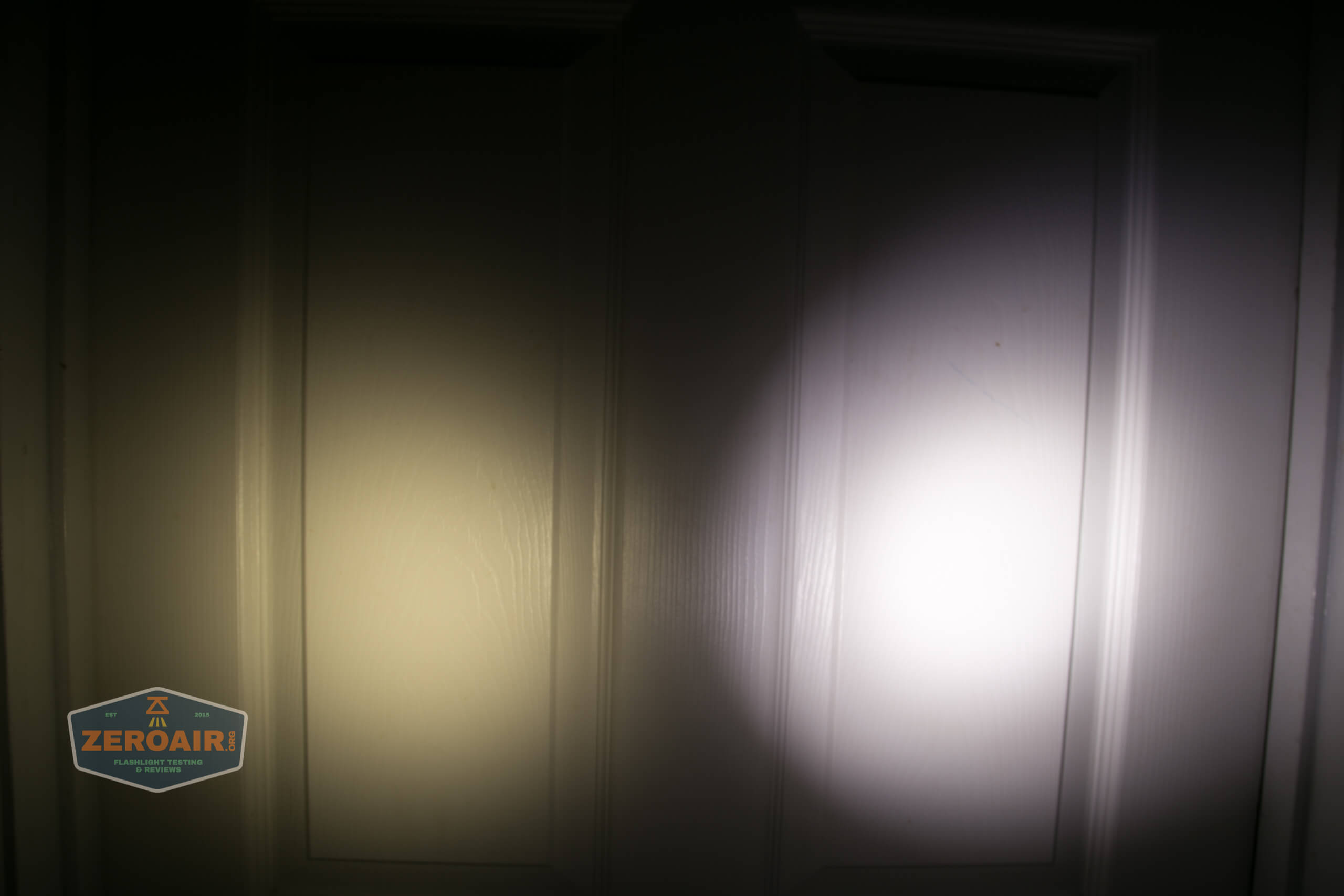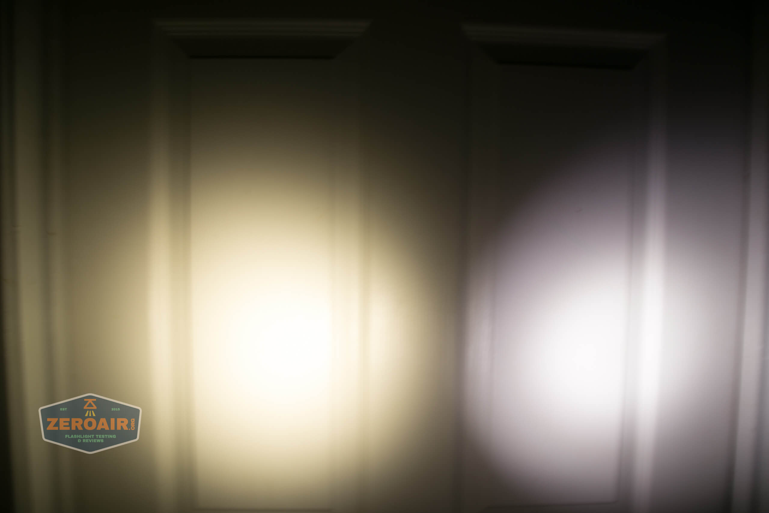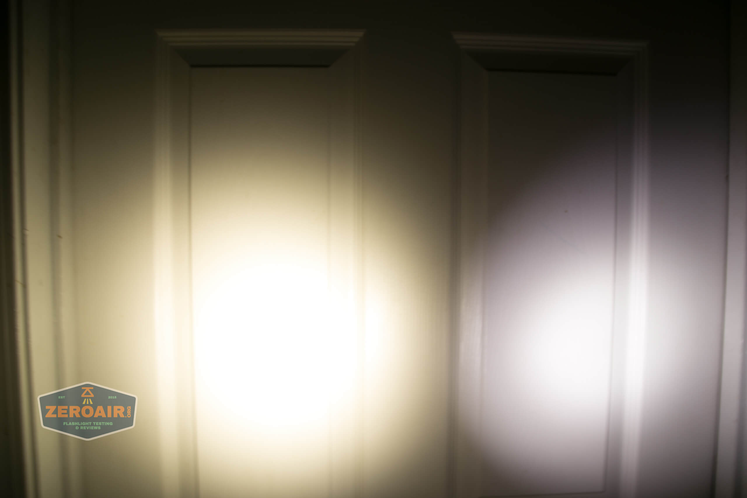 The emitter here is a Samsung LH351d and “High CRI” of 90 CRI. It’s a great choice, and I love the beam from it. The emitter sits at the base of a dimpled TIR optic, which provides a beam that’s has a spot and rolls off into a good bit of spill, too.