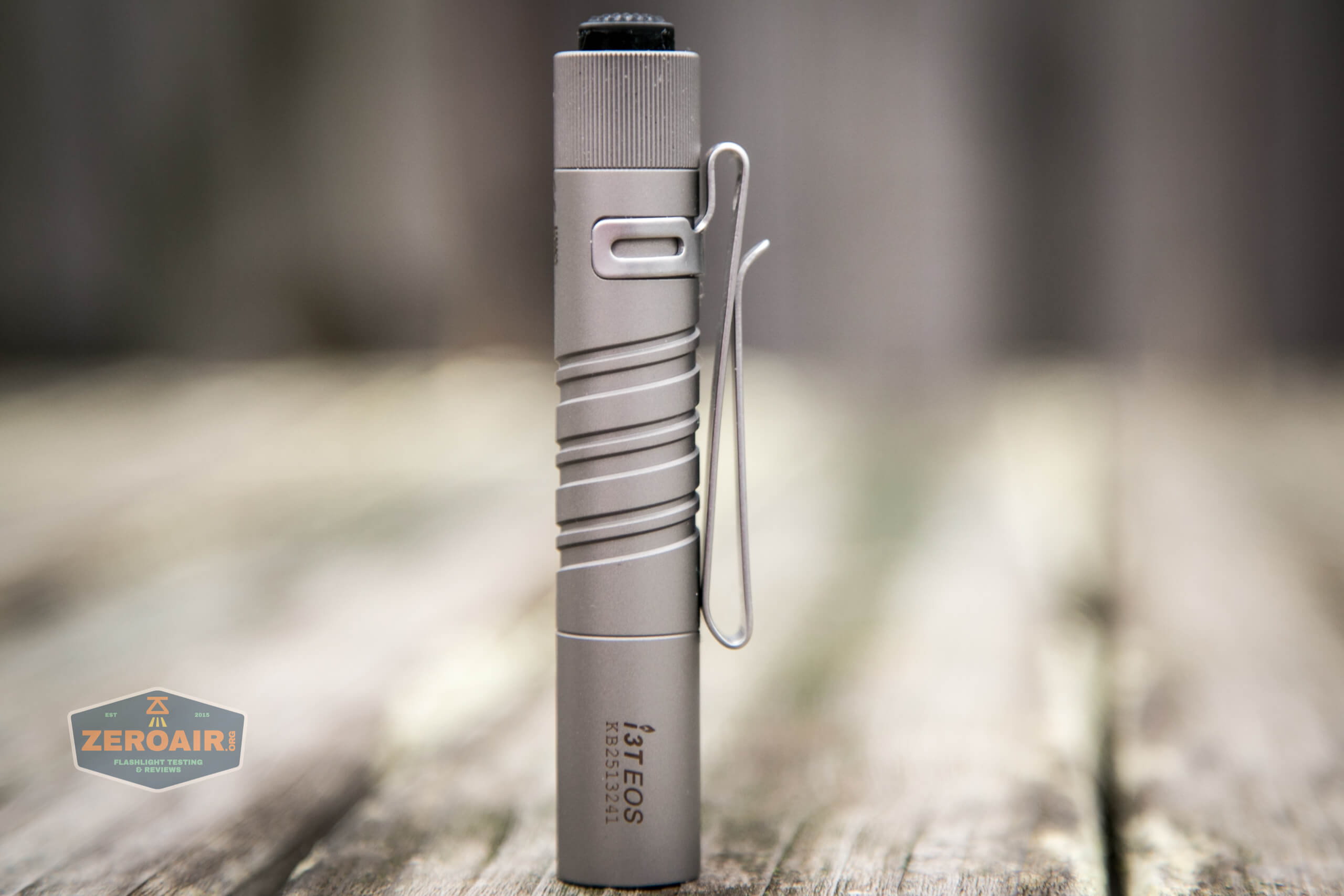 What I’m reviewing and testing here is the Olight i3T EOS Ti, but I’ve also reviewed the one beside it – the i3T EOS. As far as I can tell only the body has changed. As a result, much of that text will be seen here too. All new testing, of course!