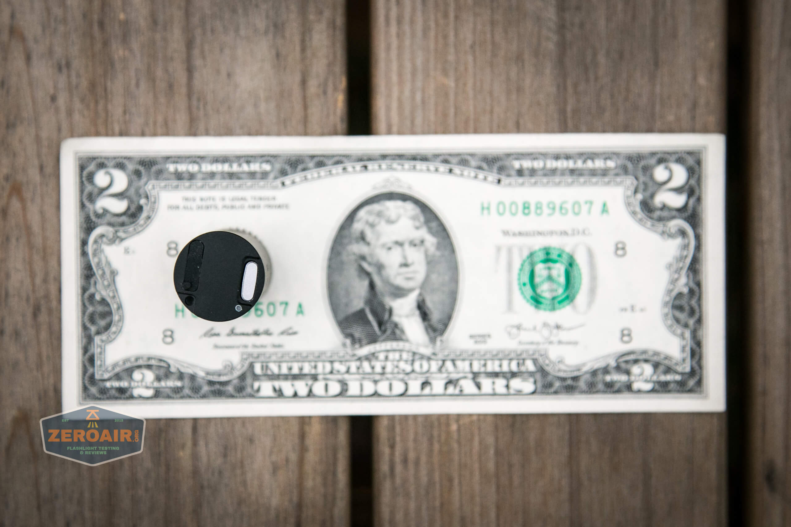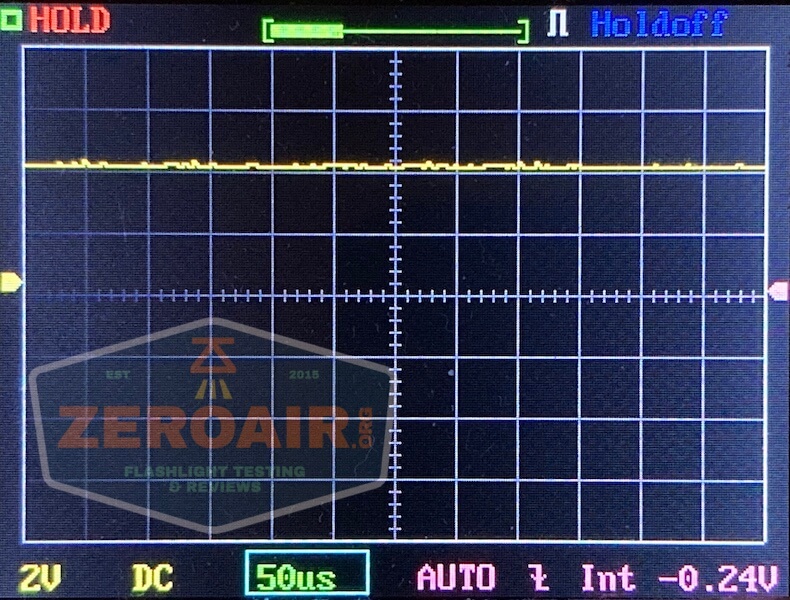 It’s unclear if there is low voltage protection because the light just kept on and on at around 2 lumens or so until I shut the test off. I wasn’t able to disassemble the light to test with bench power. The indicator beside the switch does indicate when power is low, by flashing red. This happens under 3V.