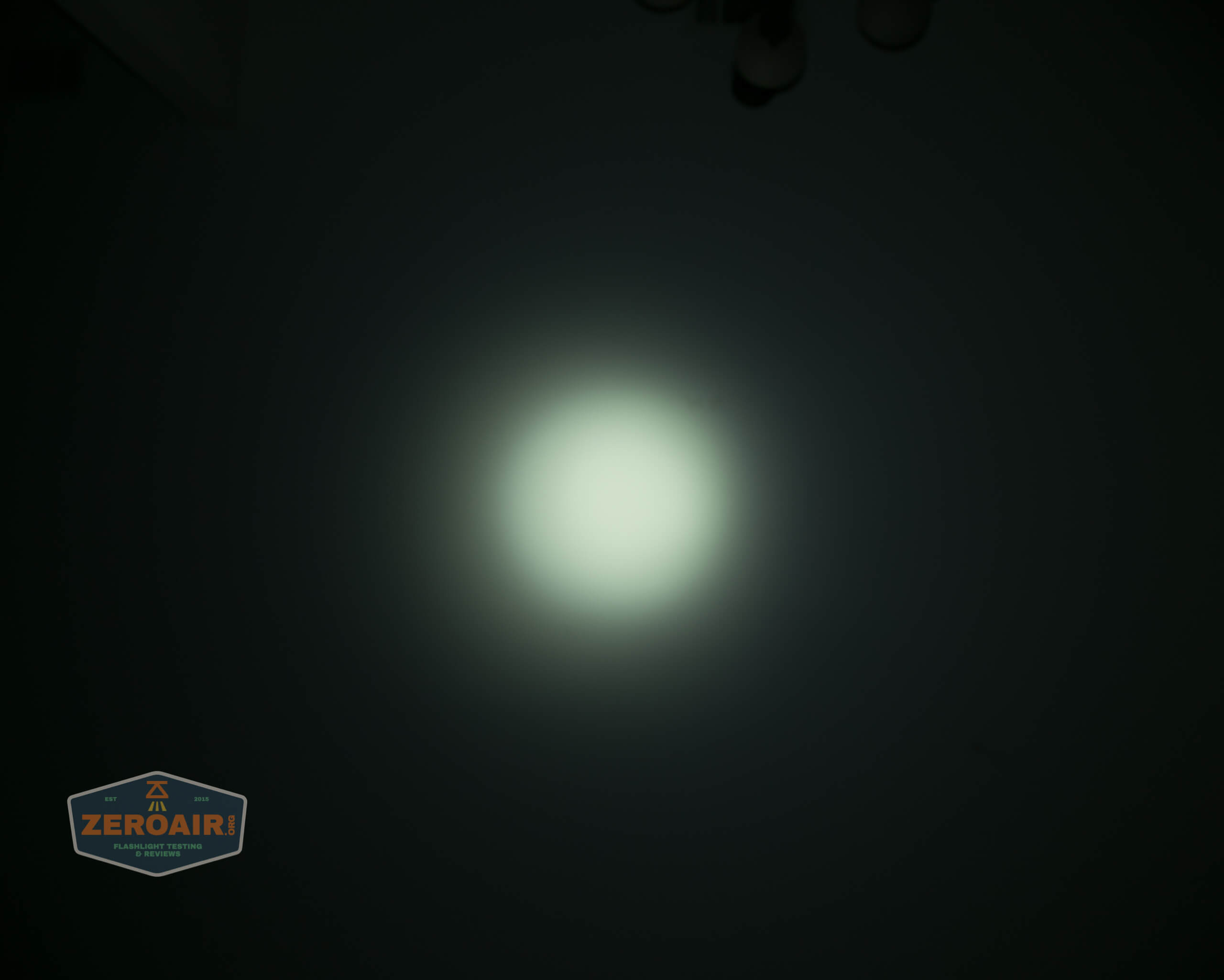 The emitter benefits from a small reflector. The beam is quite tight, with a candela per lumen of 12.7. This light is surprisingly throwy!