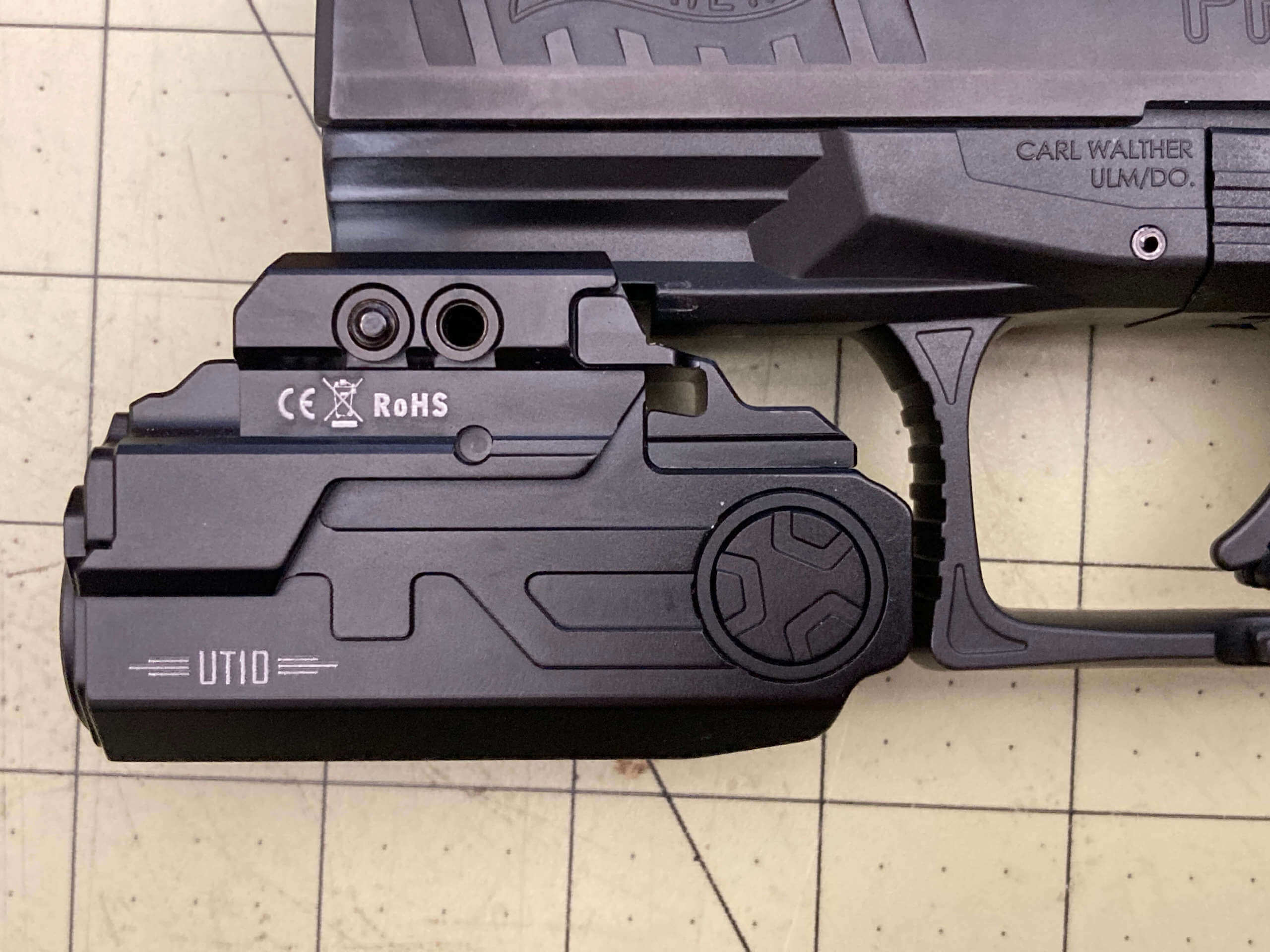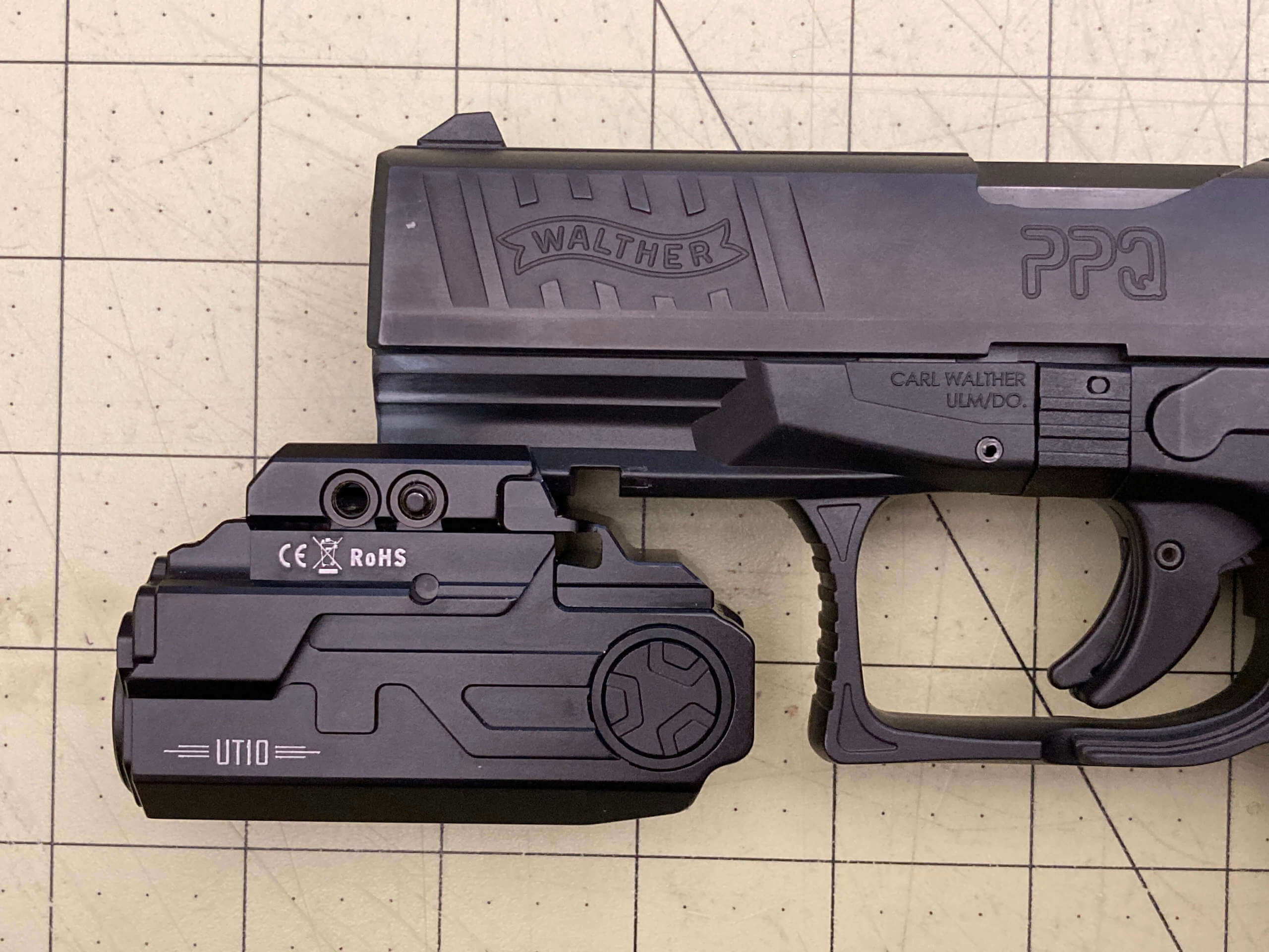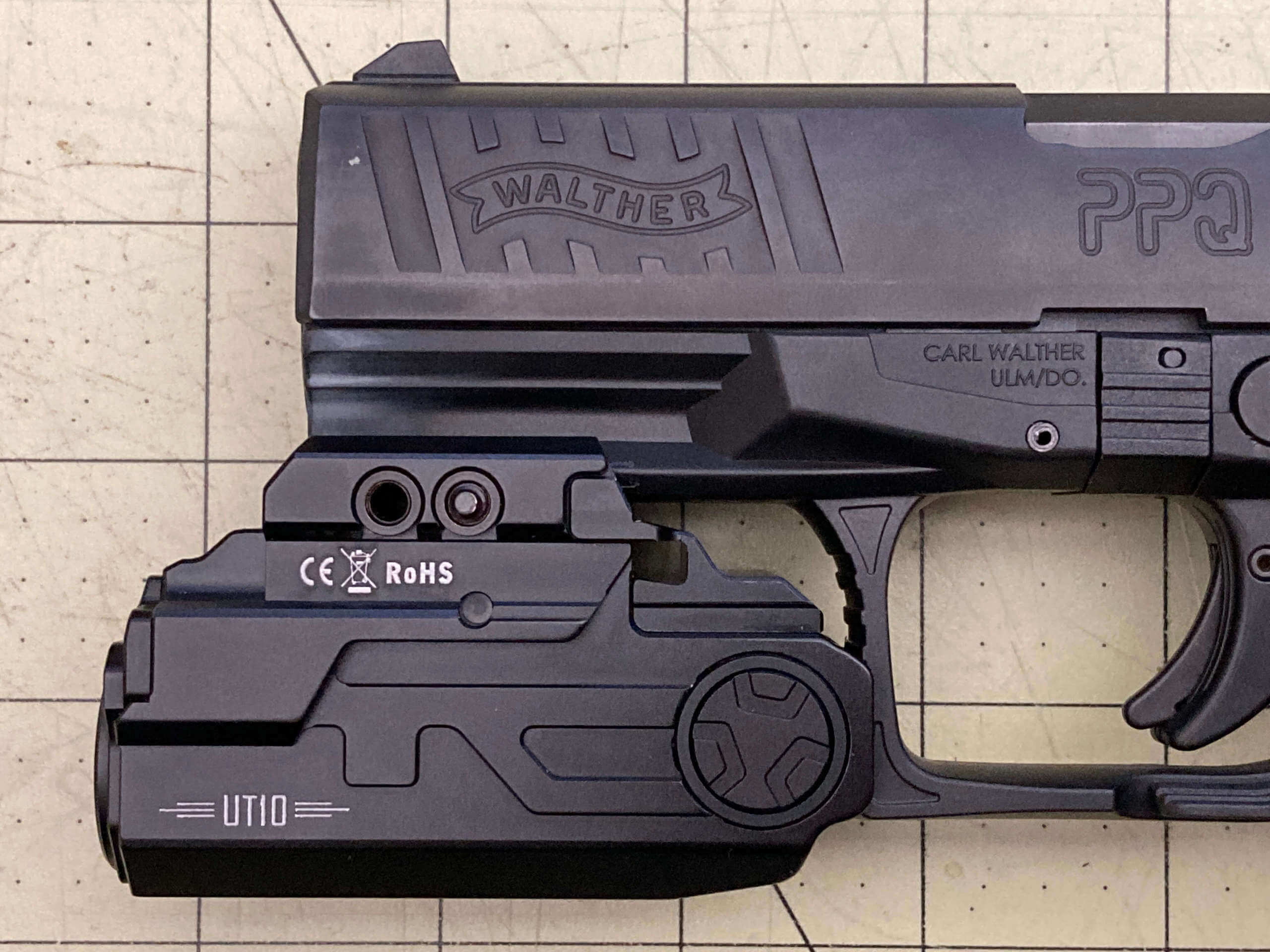 With the light fully installed in a place that the switch is just in front of the trigger guard, the charge port is completely covered. That means you’ll have to remove the UT10 for charging. Well then what’s the point of built-in charging, if the light has to be removed. We may as well be able to just swap cells.