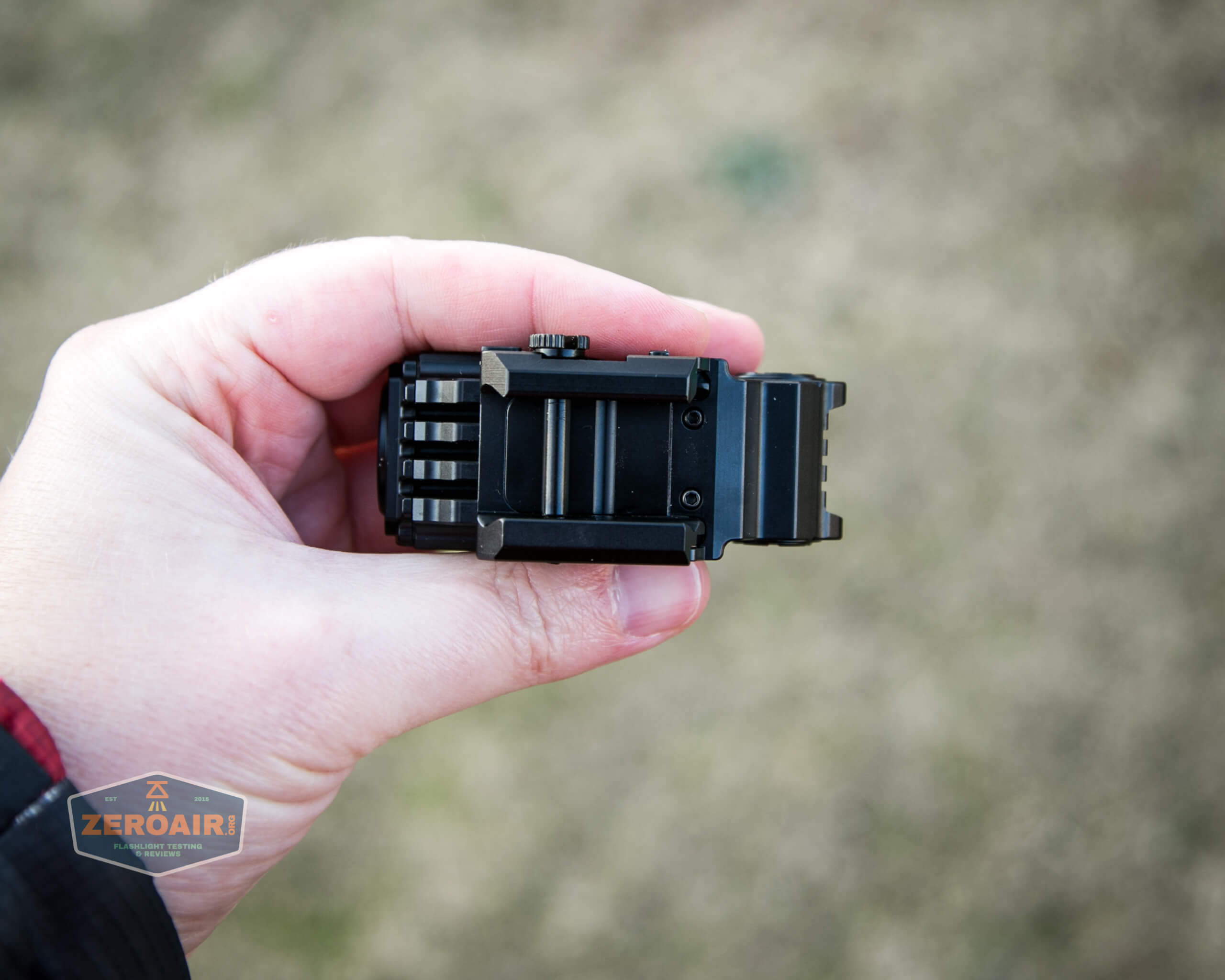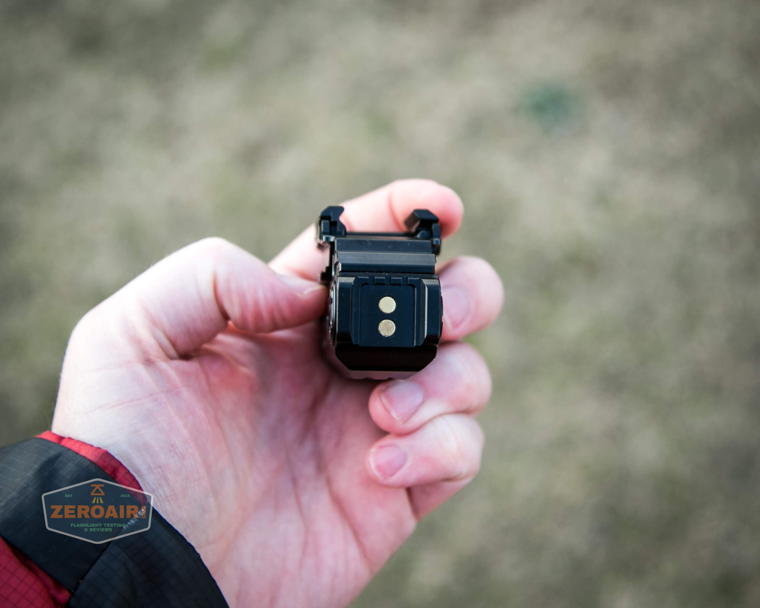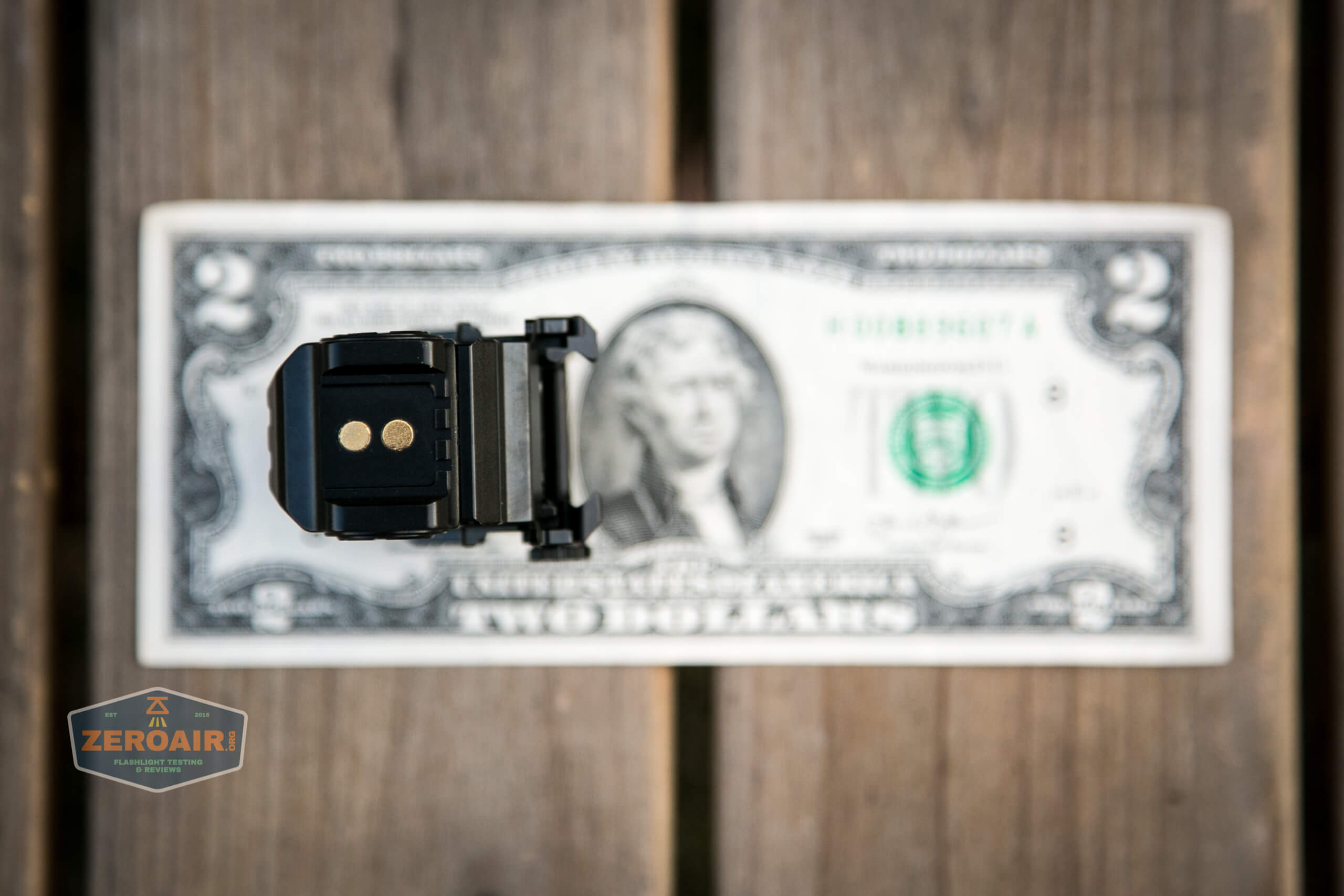 This is entirely a weapon mount flashlight. It’s not suited for much else. It doesn’t have good ergonomics for in-hand use, and it certainly won’t work as a headlamp. So the main (and only) means of retention and carry of the UT10 is limited to the rail system.