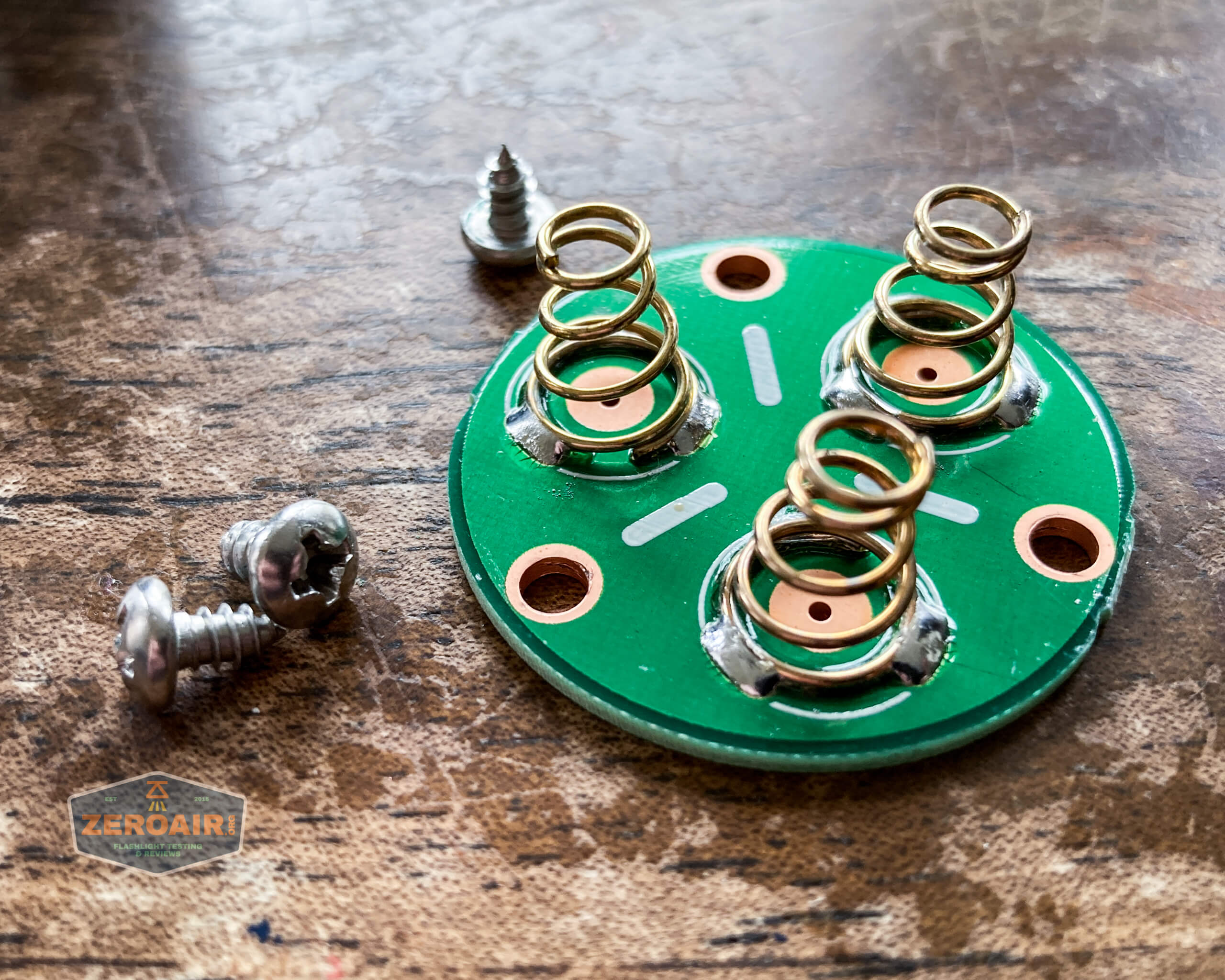 As I said, those springs are very springy. When just resting in the tail of the light, they sit up this high (see below.) So when you’re returning the pcb to it’s place, you have to really press down against the springs. I recommend doing about a fourth turn per screw, to keep the pressure even. And you’ll need to screw them down all the way.