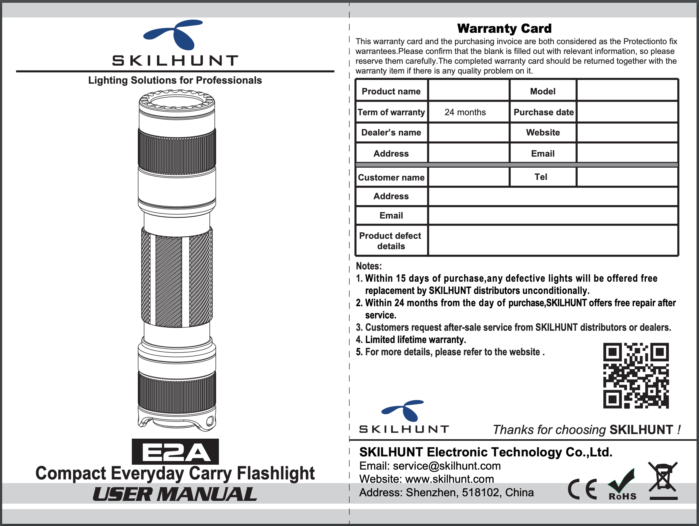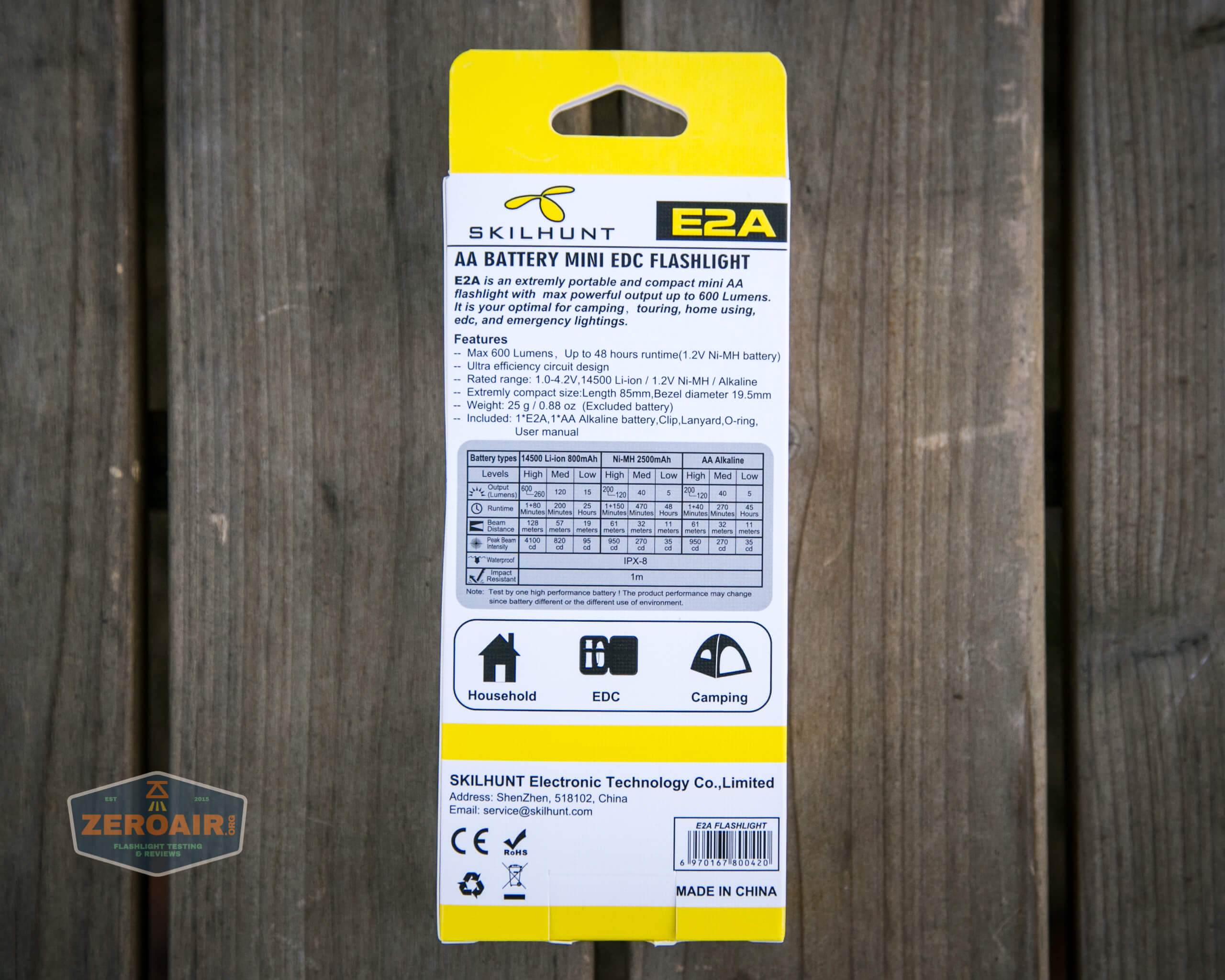 Official Specs and Features of the Skilhunt E2A 14500/AA EDC Flashlight