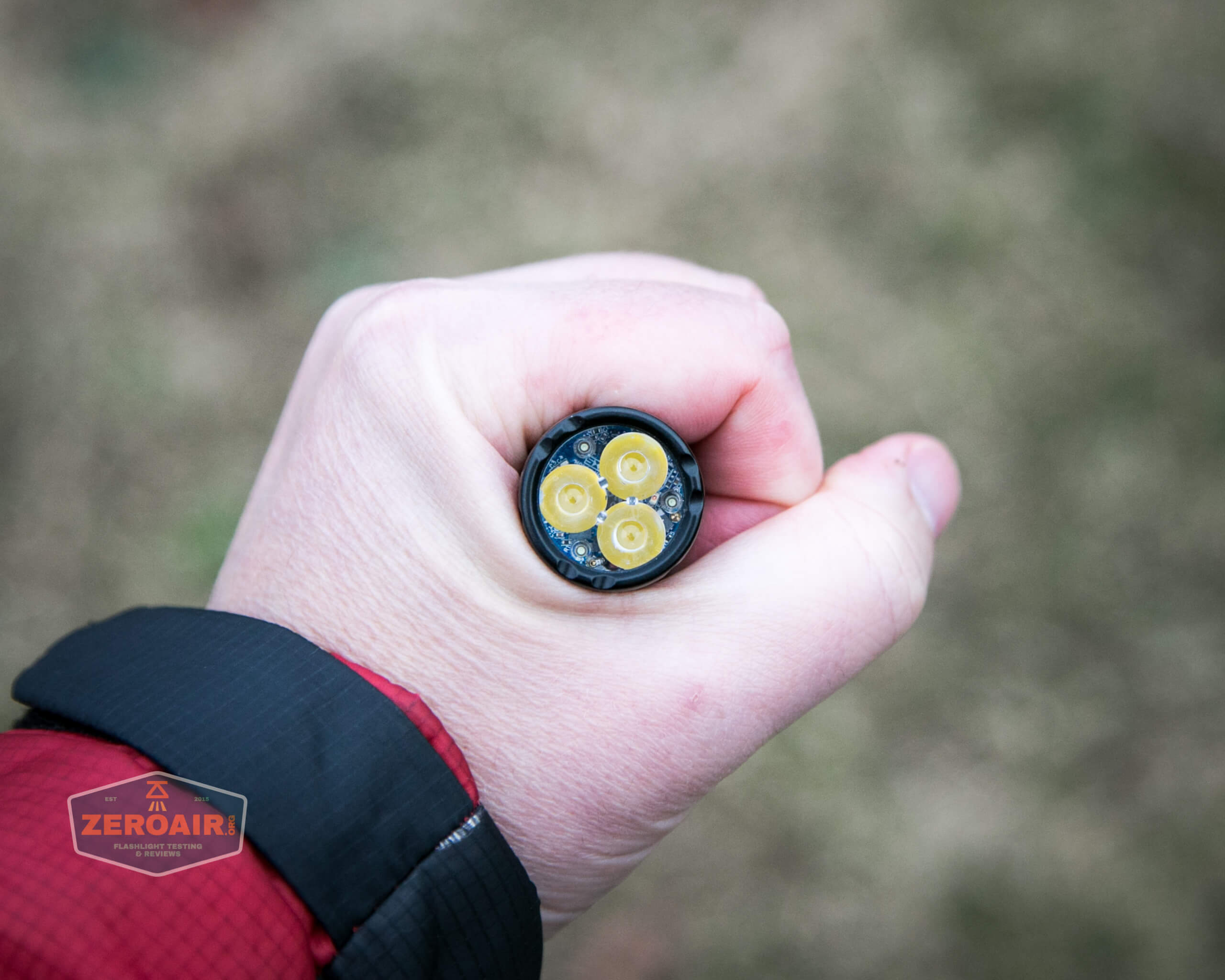 Here’s the test light with the venerable Convoy S2+. Mine is a custom “baked” edition Nichia 219b triple. A very nice 18650 light!