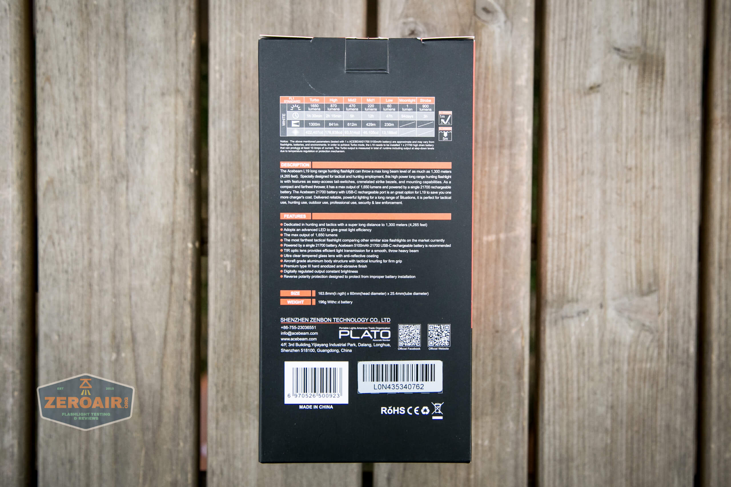 The Acebeam L19 Long Range hunting uses an Osram flat white light and runs on a single 21700 (included). It’s quit a thrower! Read on!