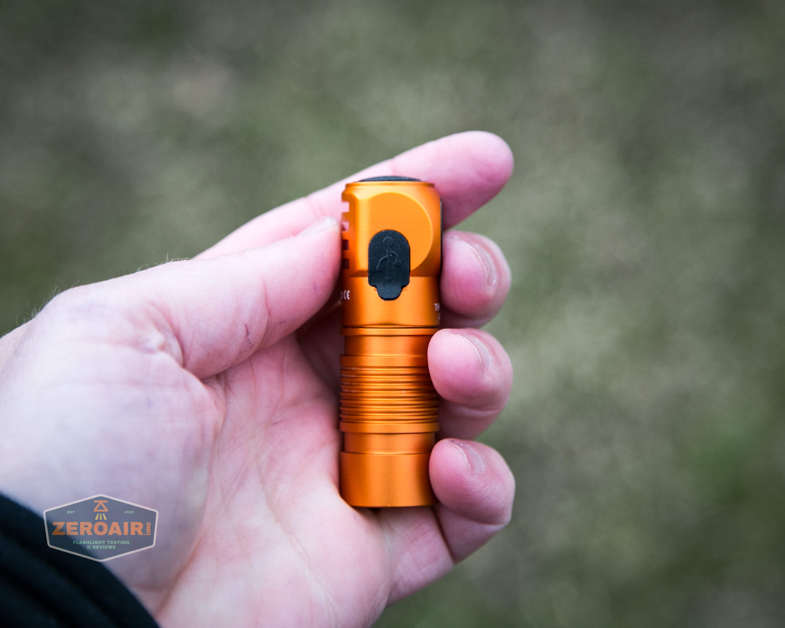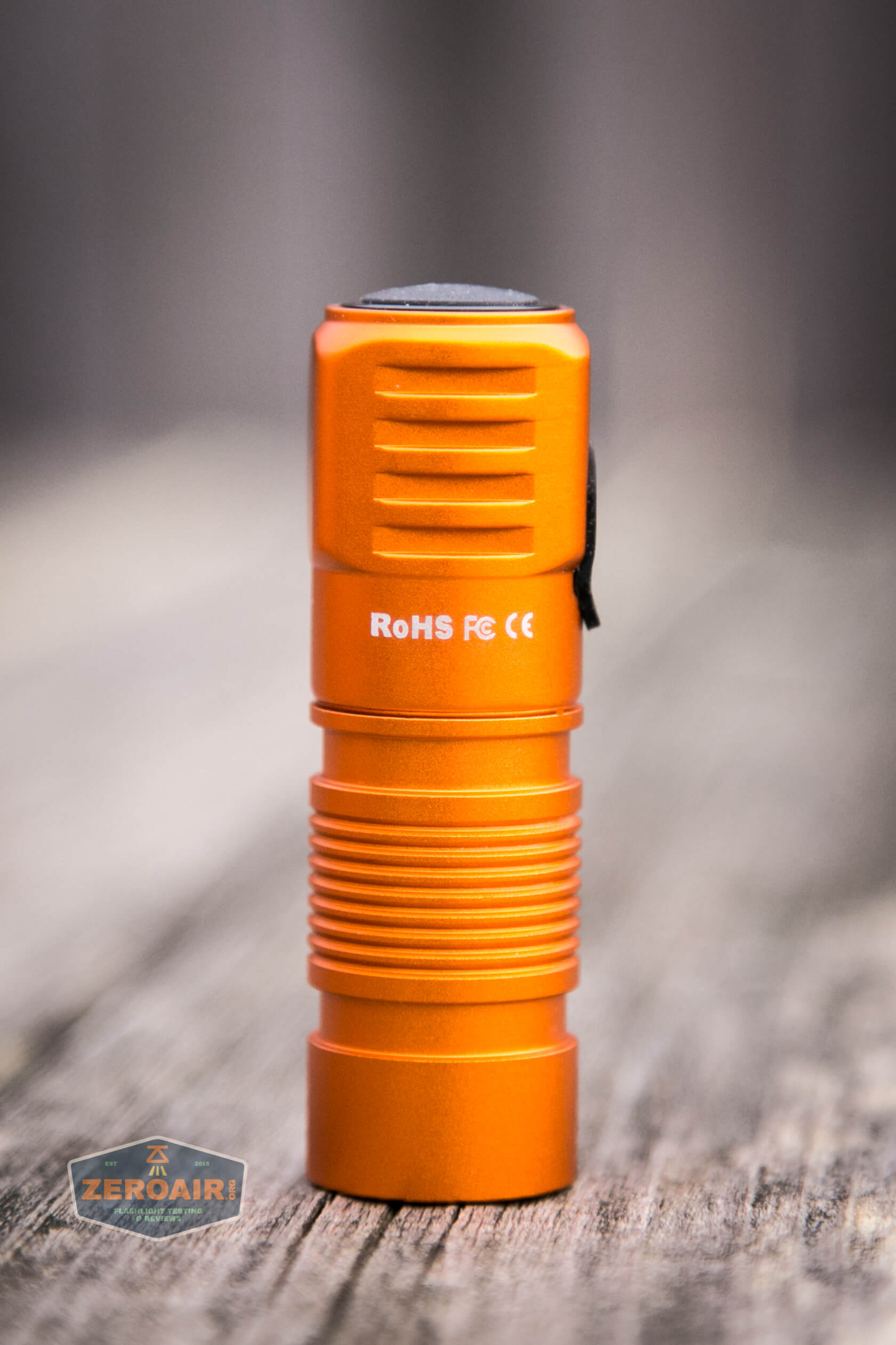 There’s also the magnet in the tailcap, which is strong enough to hold the light horizontally, as seen below.