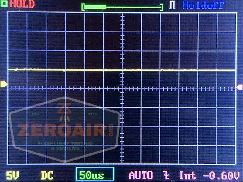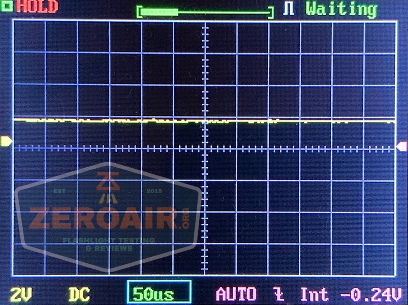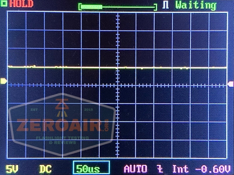 Then there’s the Ultrafire WF-602C flashlight, which has some of the worst PWM I’ve seen. It’s so bad that I used a post about it to explain PWM! Here are multiple timescales (10ms, 5ms, 2ms, 1ms, 0.5ms, 0.2ms) to make comparing this “worst” PWM light to the test light easier. That post also explains why I didn’t test the WF-602C at the usual 50us scale.