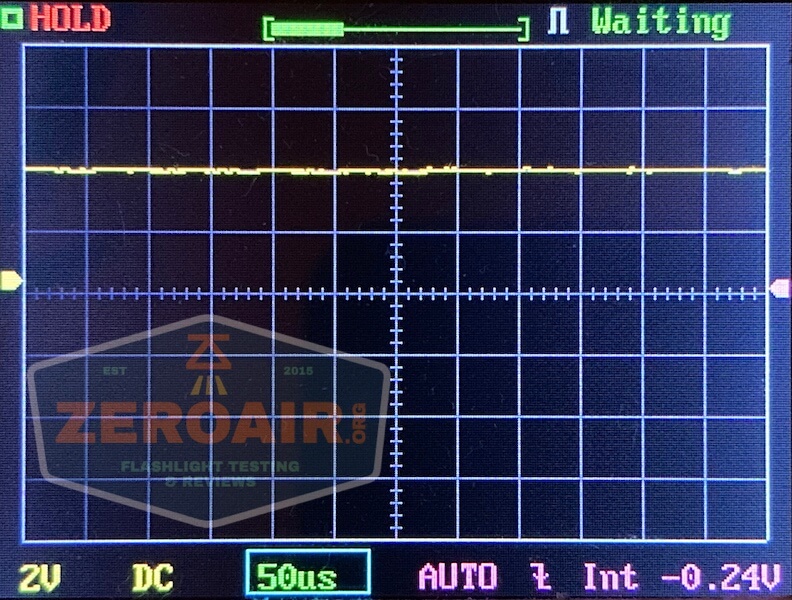 Then there’s the Ultrafire WF-602C flashlight, which has some of the worst PWM I’ve seen. It’s so bad that I used a post about it to explain PWM! Here are multiple timescales (10ms, 5ms, 2ms, 1ms, 0.5ms, 0.2ms) to make comparing this “worst” PWM light to the test light easier. That post also explains why I didn’t test the WF-602C at the usual 50us scale.