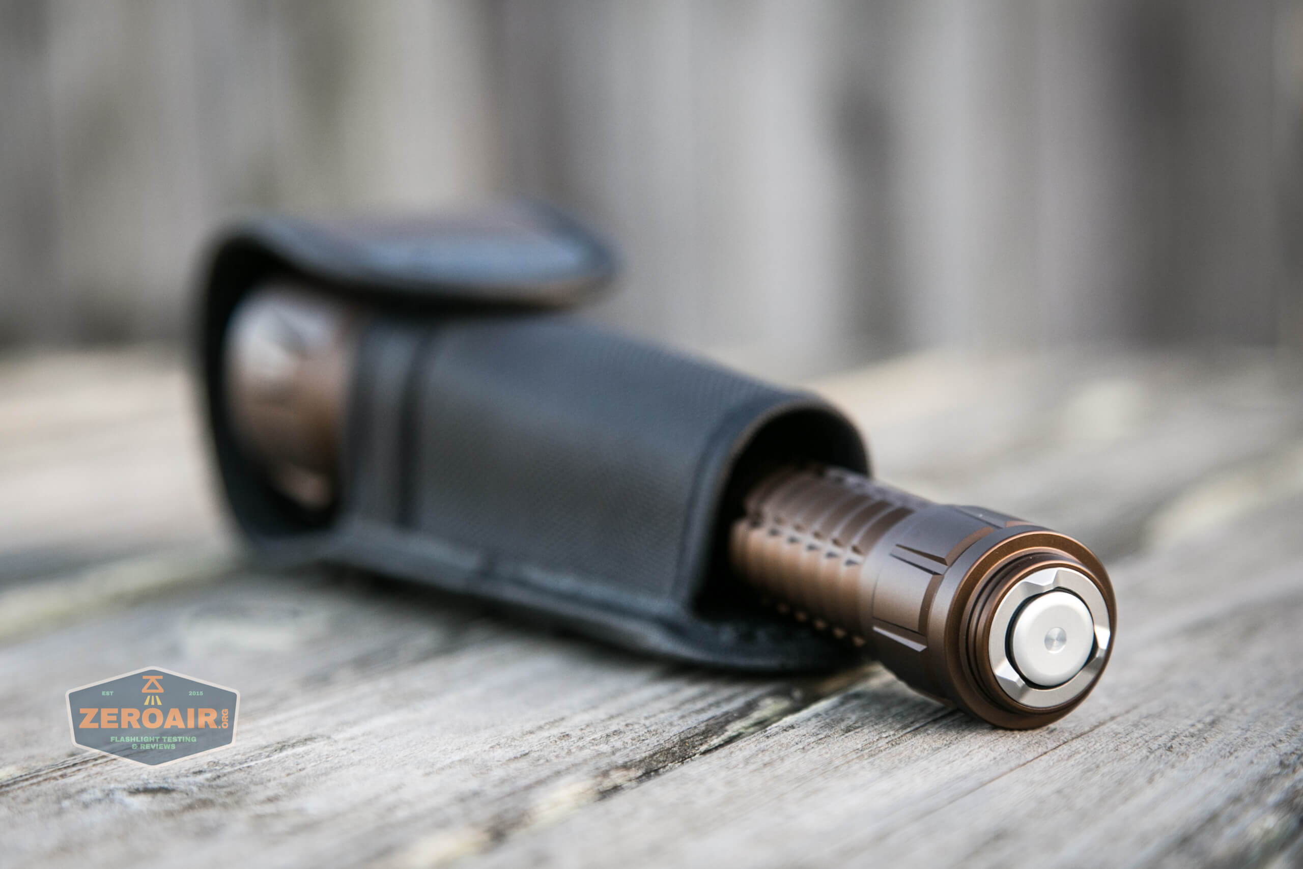 Carry of the Olight Javelot Turbo Thrower flashlight is by way of a nylon pouch.