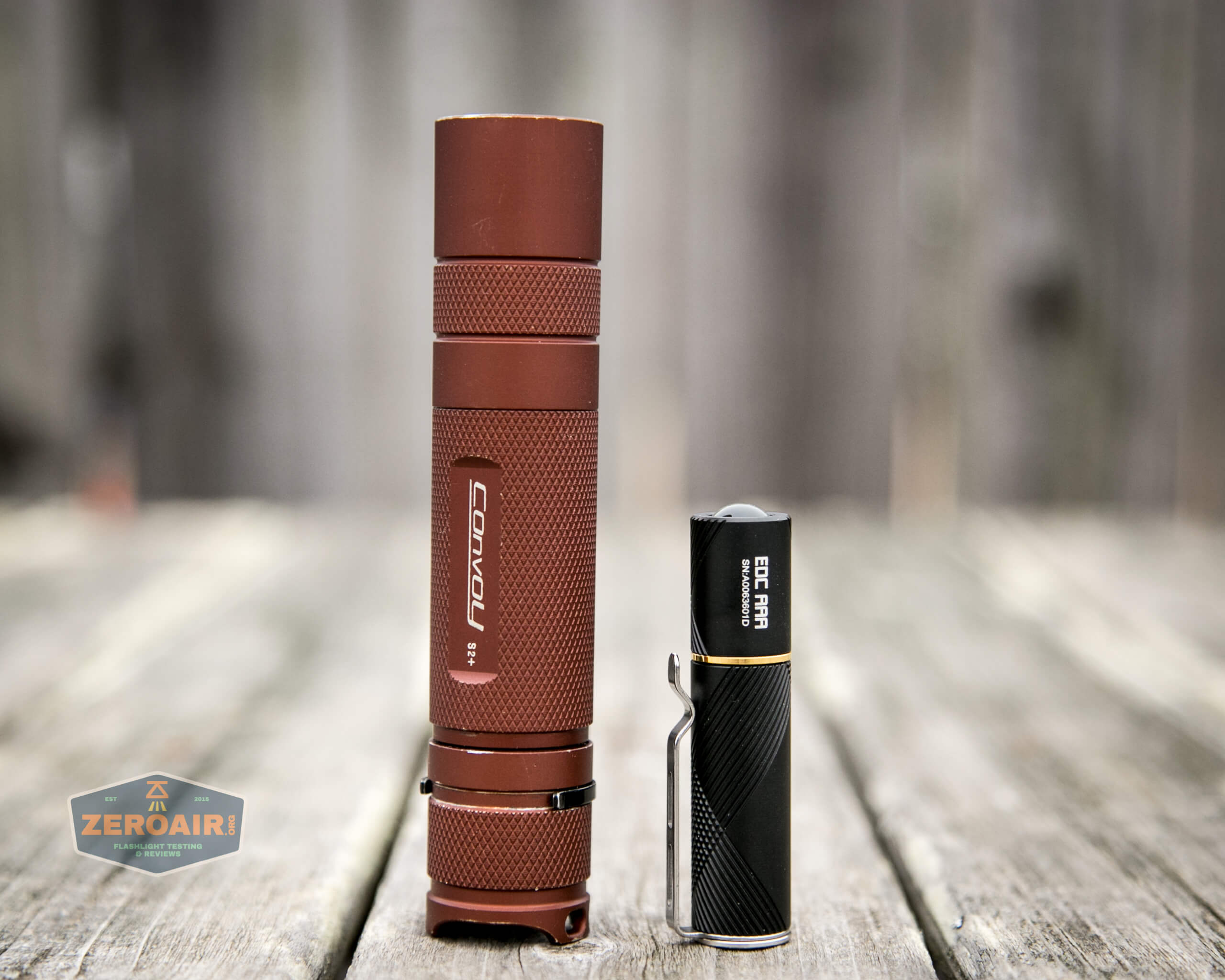 Here’s the test light with the venerable Convoy S2+. Mine’s a custom “baked” edition Nichia 219b triple. A very nice 18650 light.