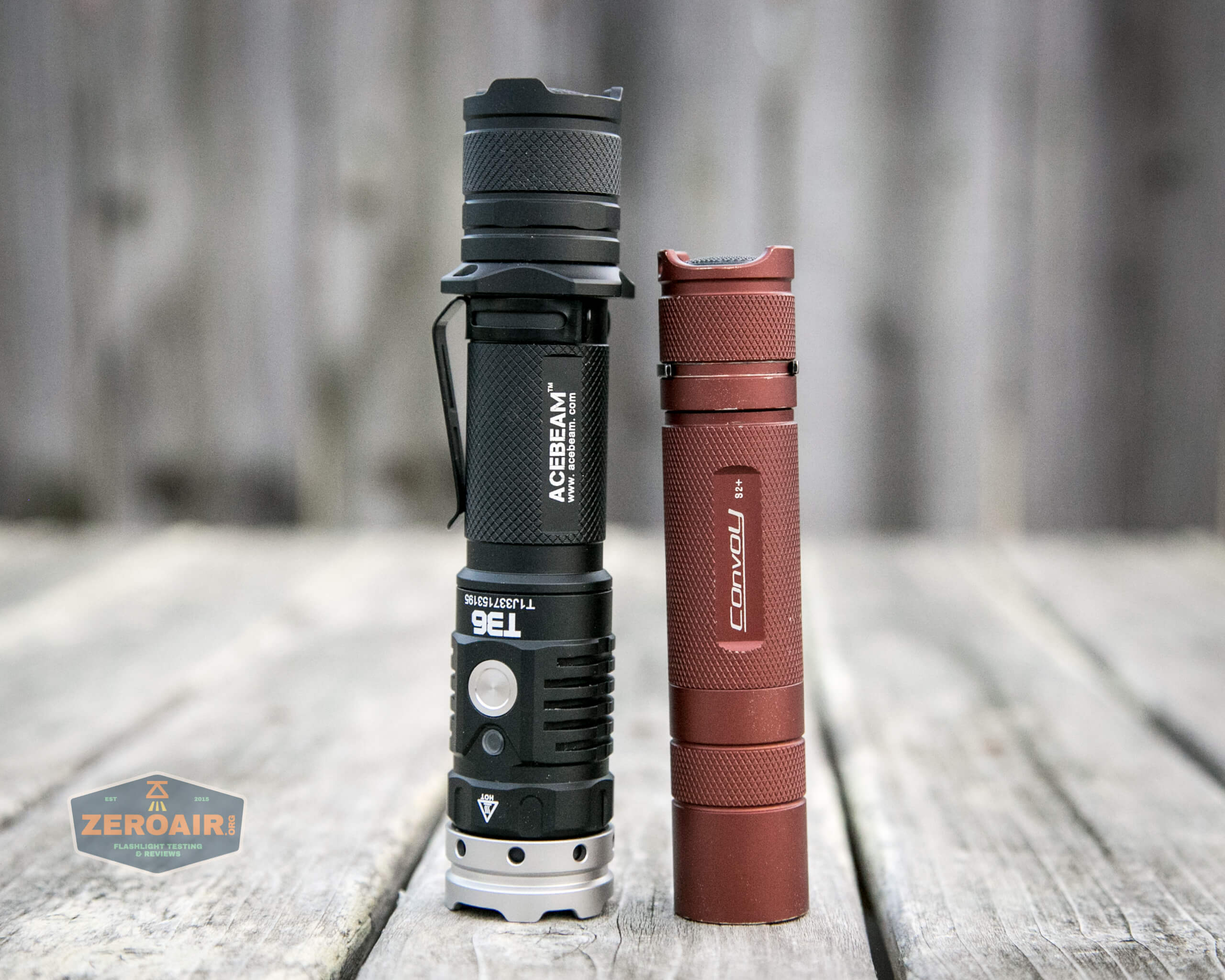 And here’s the light beside my custom-engraved TorchLAB BOSS 35, an 18350 light. I reviewed the aluminum version of that light in both 35 and 70 formats.