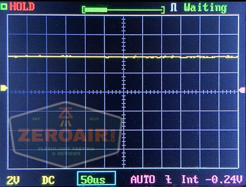 Then there’s the Ultrafire WF-602C flashlight, which has some of the worst PWM I’ve seen. It’s so bad that I used a post about it to explain PWM! Here are multiple timescales (10ms, 5ms, 2ms, 1ms, 0.5ms, 0.2ms) to make comparing this “worst” PWM light to the test light easier. That post also explains why I didn’t test the WF-602C at the usual 50us scale.