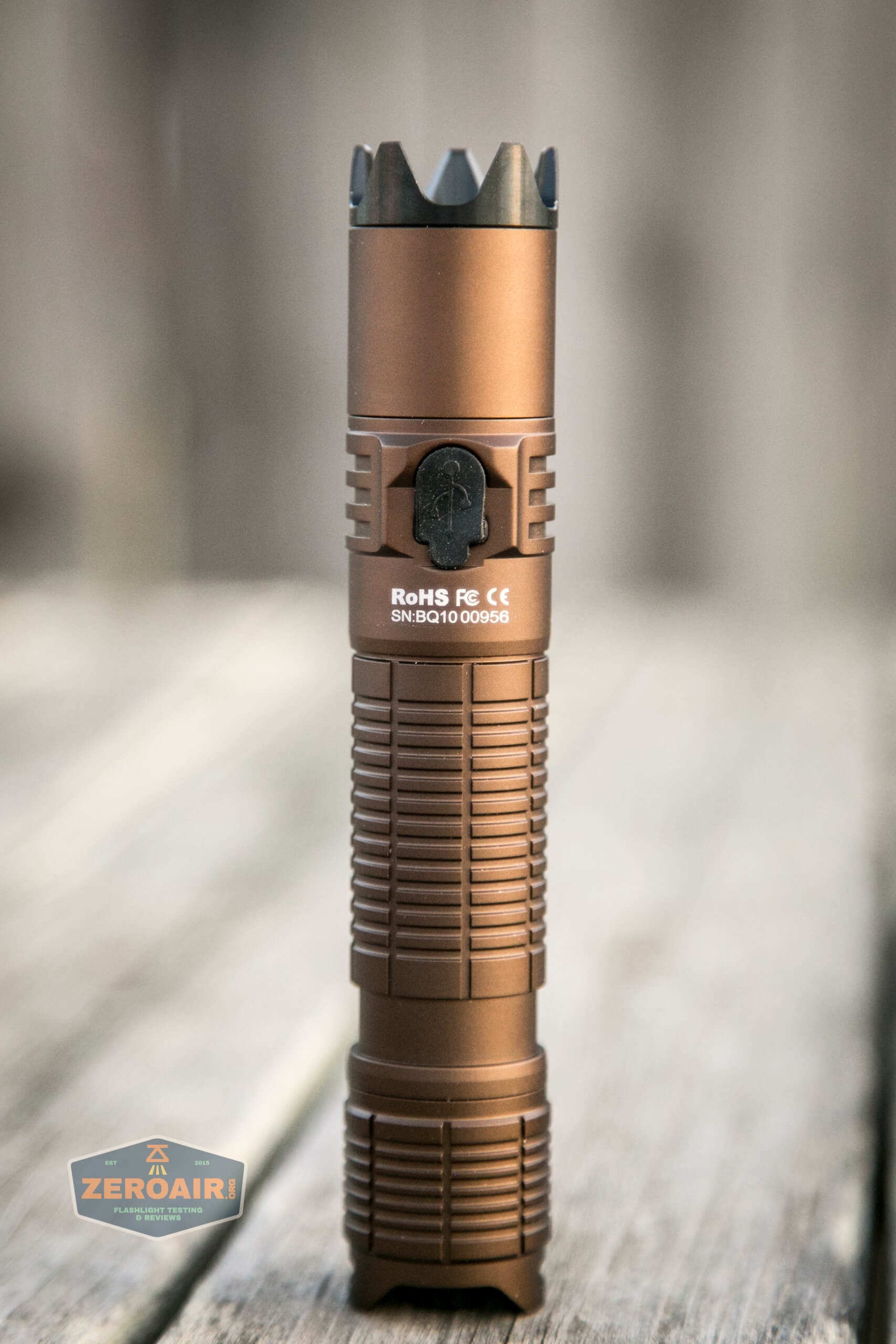 If the flashlight will headstand, I’ll show it here (usually the third photo). If the flashlight will tailstand, I’ll show that here, too (usually the fourth photo).