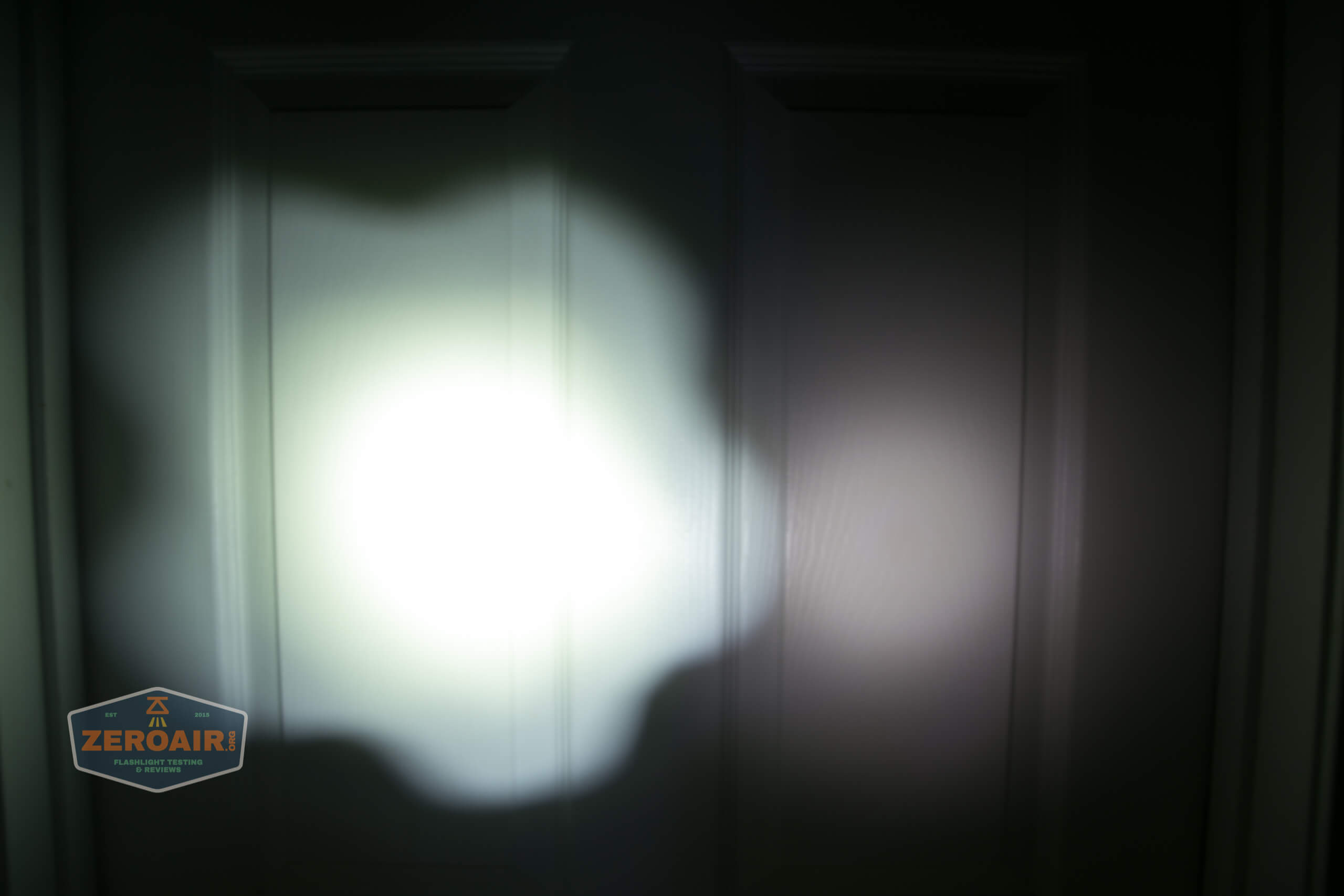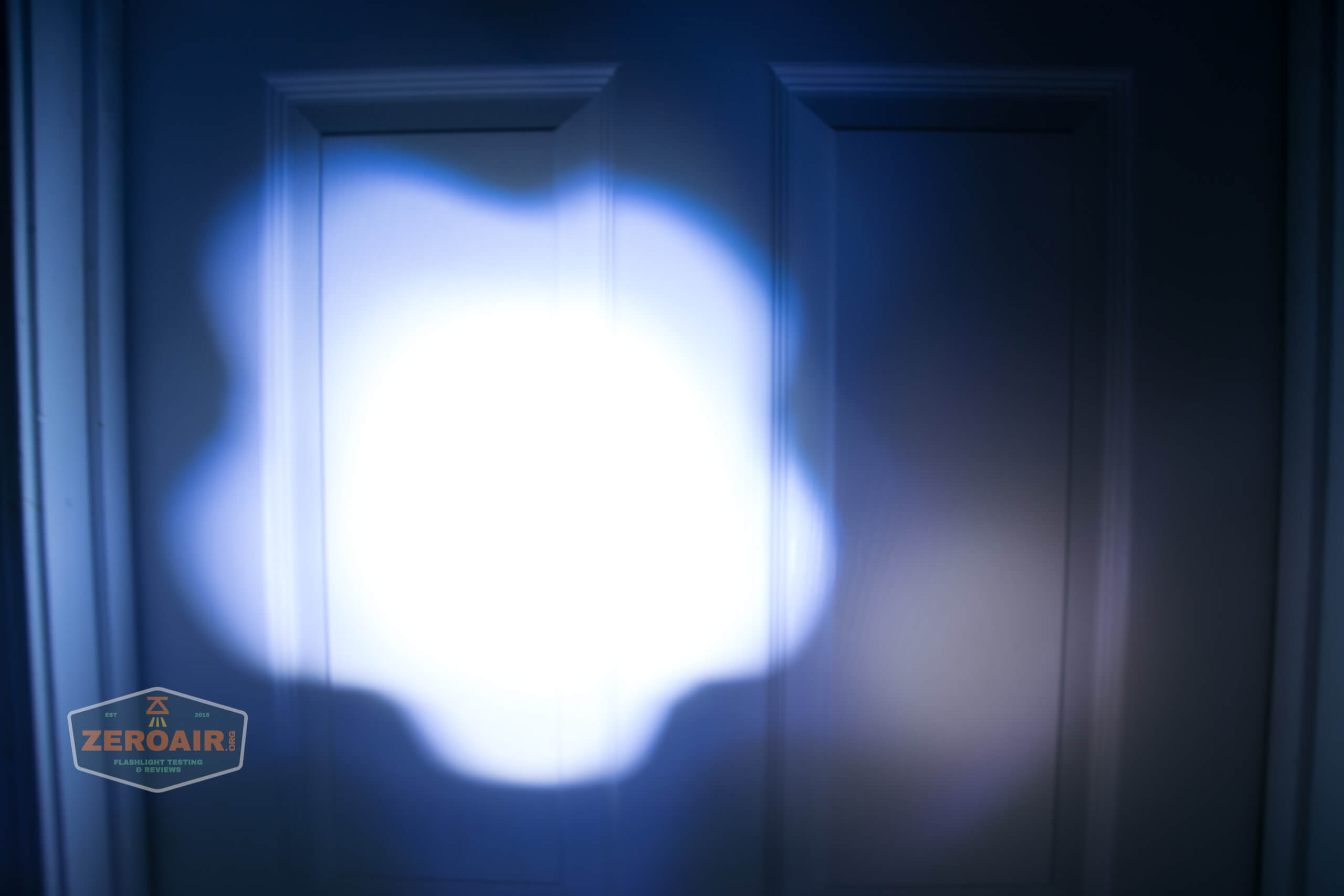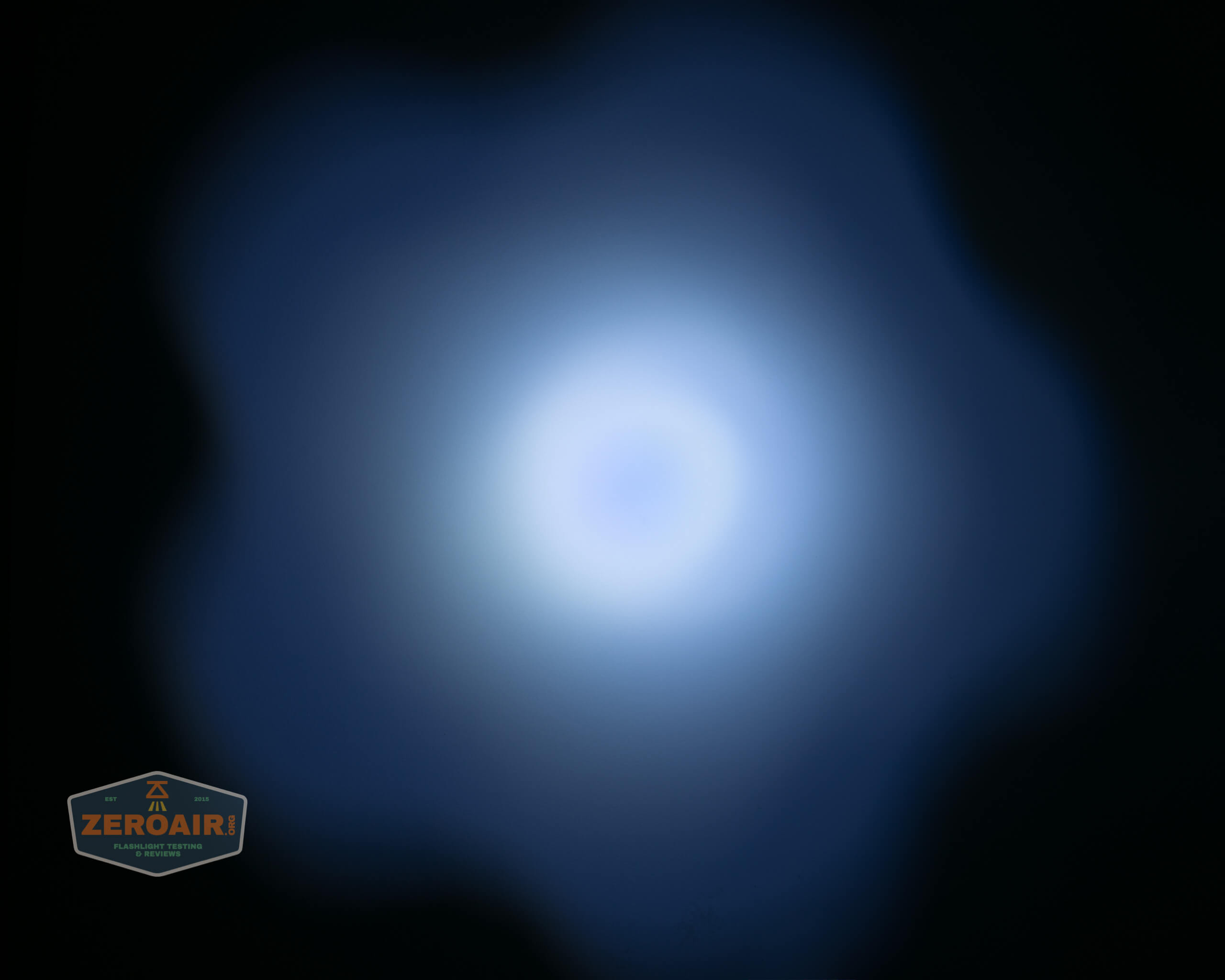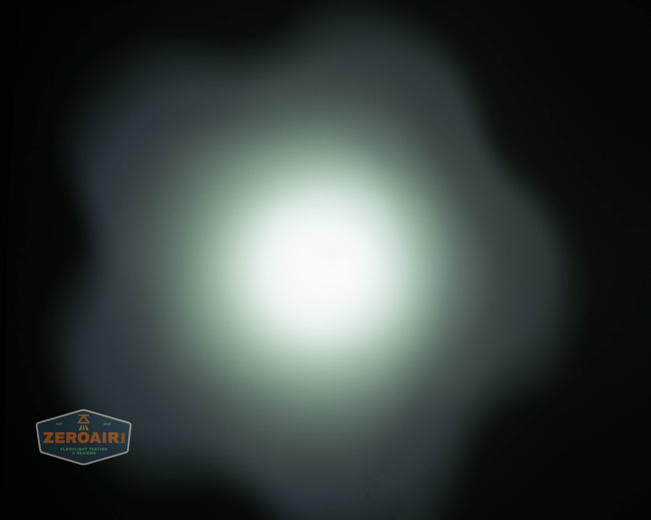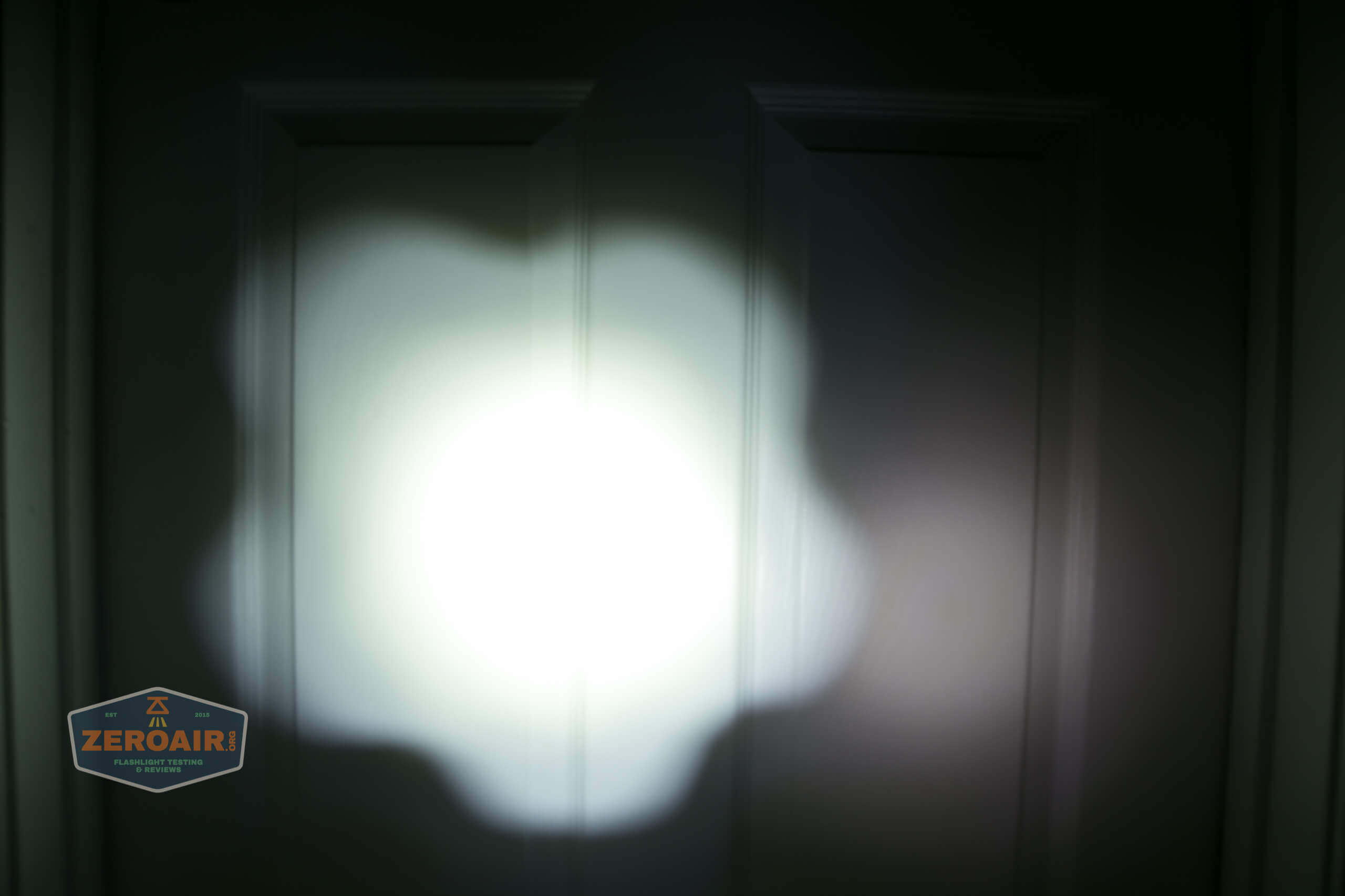Now, here’s the rub for me on this light. I’ve dialed down the exposure here so that you can see the beam without being completely blown out. When on Turbo, the output is positively angry blue. Not only is it angry blue, but there’s also an emitter issue – like half of the emitter is bad or something. It’s partly visible in the beamshot below. So whatever is wrong here could simply be a bad emitter (hey it happens) or something in the light that caused a bad emitter. I will probably poke around and see what I can see with a digital multimeter. I’m open to your thoughts, though! I don’t mind fixing this one. 😀