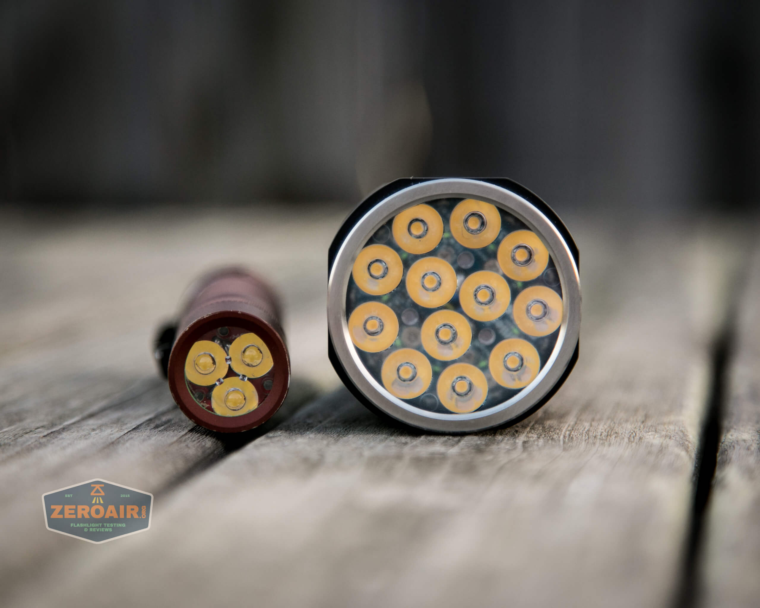 Here’s the test light with the venerable Convoy S2+. Mine’s a custom “baked” edition Nichia 219b triple. A very nice 18650 light.