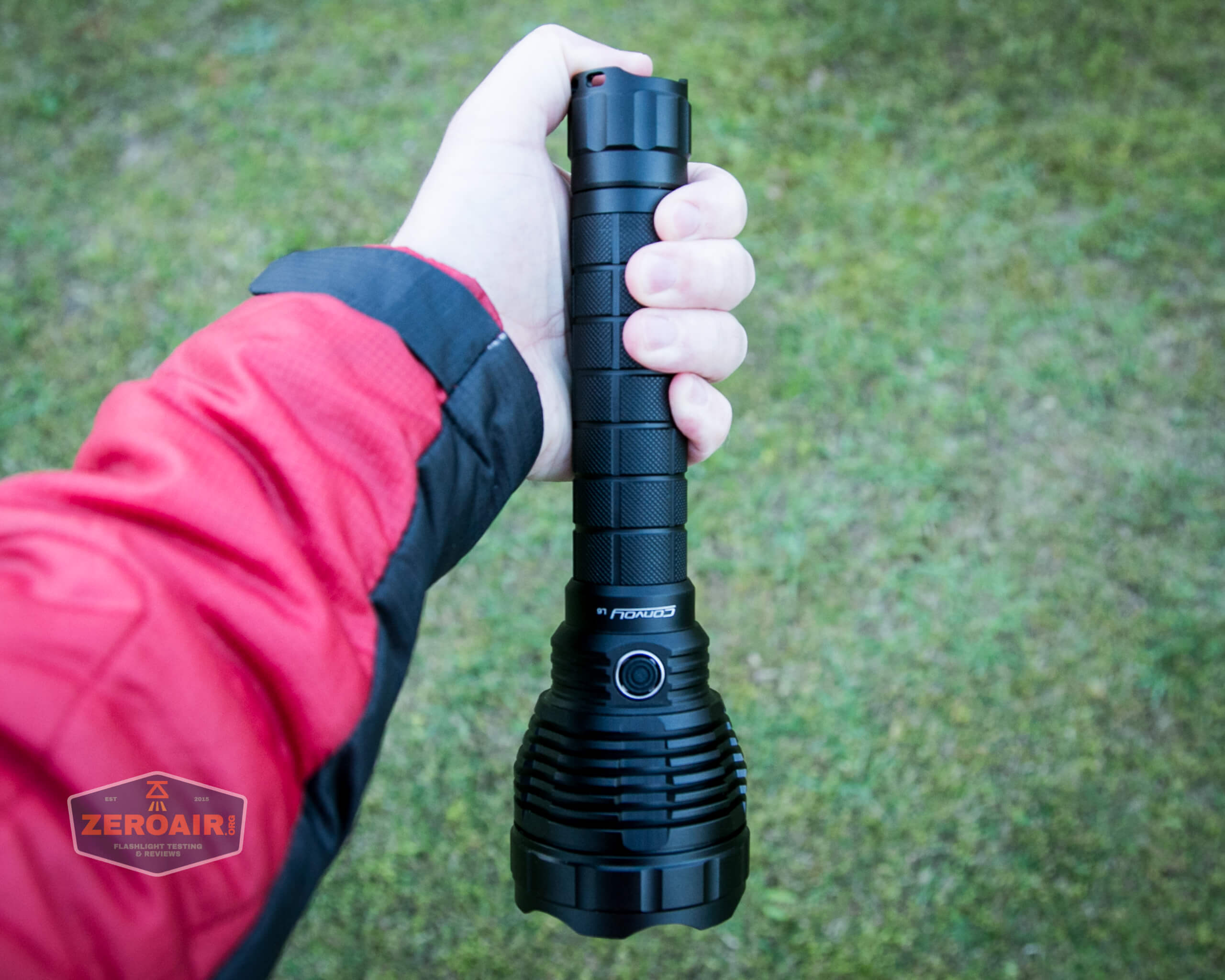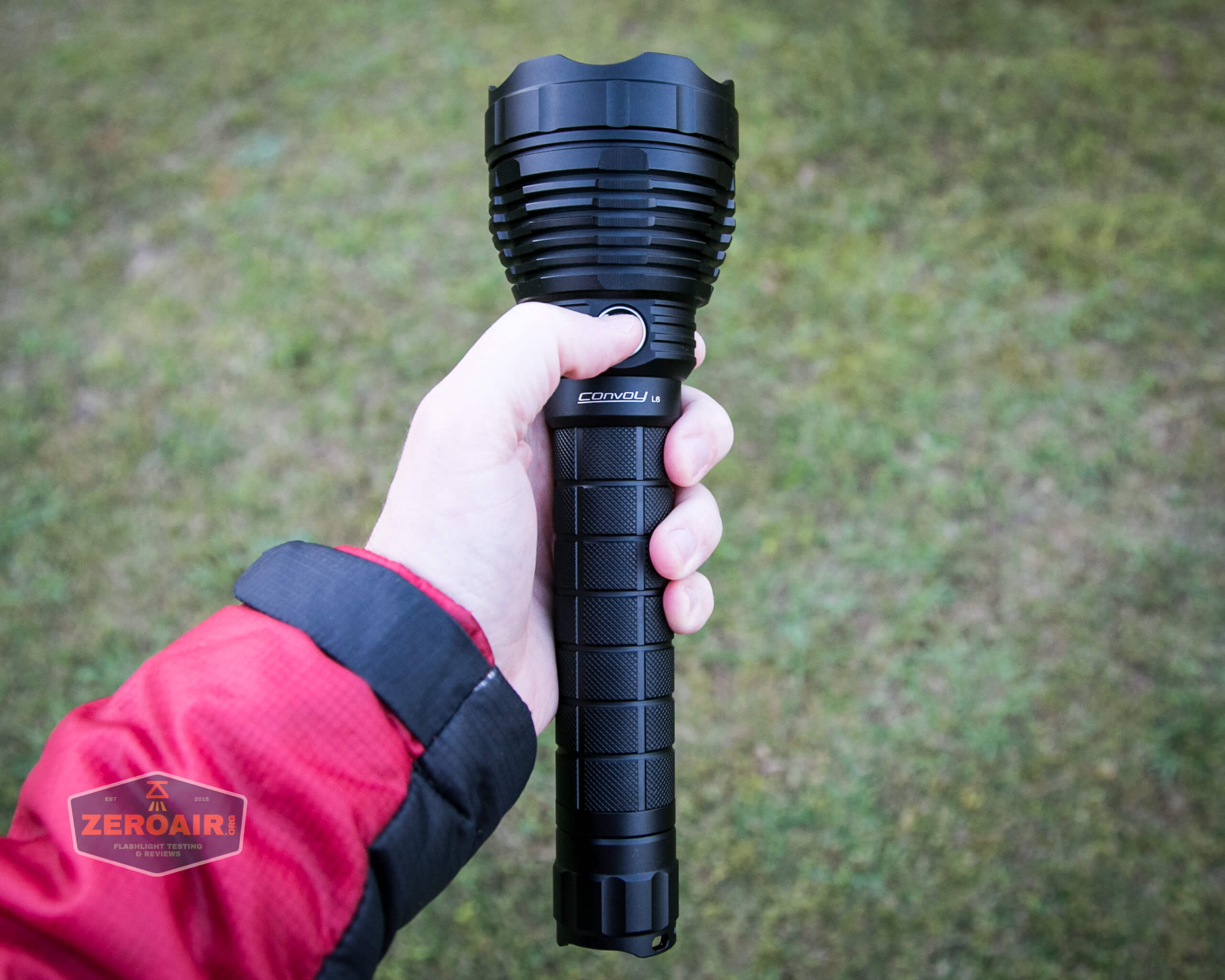 Holding the light this way, in a tactical grip way, is cumbersome because of the overall size of the Convoy L6.