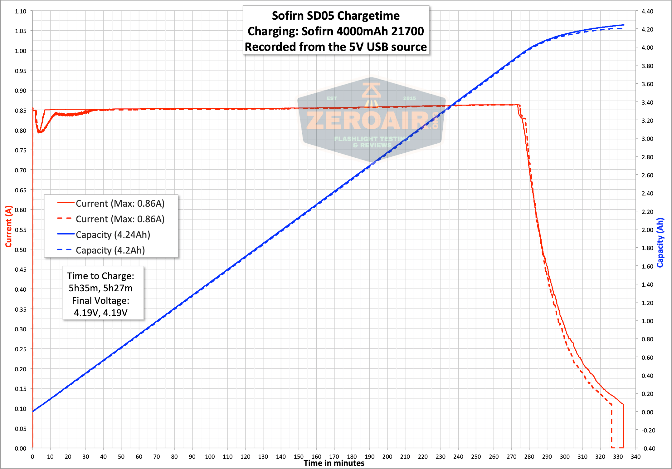 Charging looks pretty good if a little slow. It’s certainly consistent. You’d likely want to just have a backup 21700, so that you can swap the cell after one is depleted.