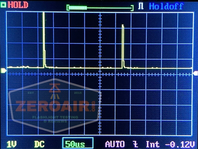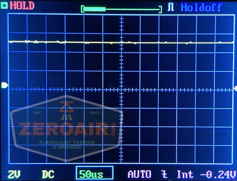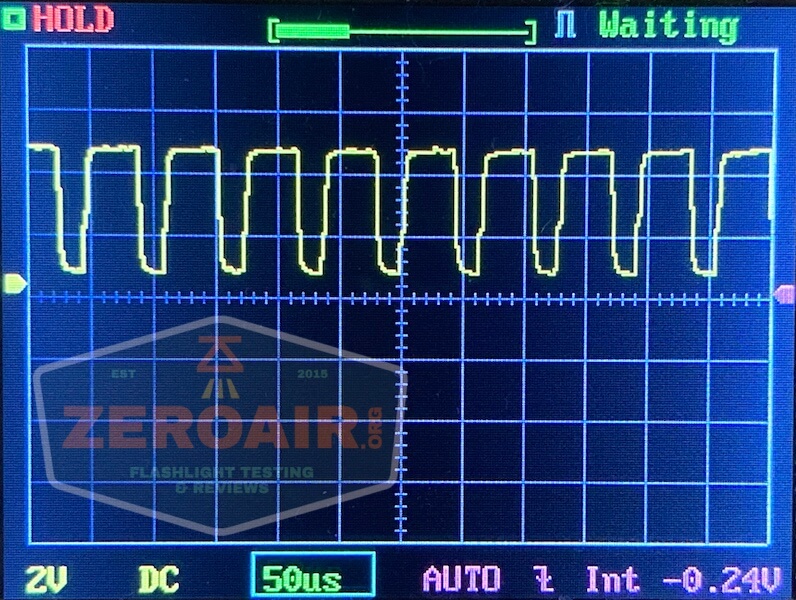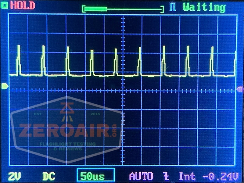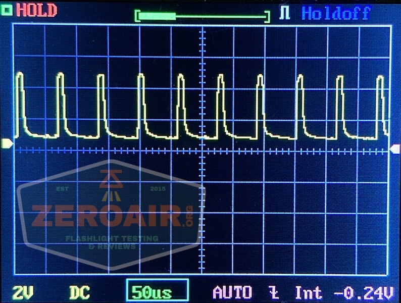 There’s PWM on all modes but the top two. It’s not very bad PWM, though. Like in the table above, the very lowest mode (leftmost, below) is the lowest of the ramping mode because that one’s quite lower than the lowest stepped mode.
