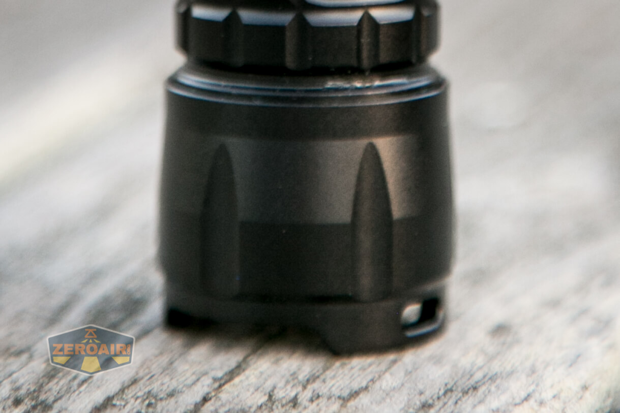 Here’s why you probably know this light. This gigantic bezel. Strike bezel? Murder bezel? I really don’t know but 1) it’s awesome and 2) it’s actually heavy (probably steel) and the weight makes it doubly awesome. Useful? I don’t know but it’s great! If you don’t want to use it, Wurkkos provides a much more subdued bezel, which also has crenelations.