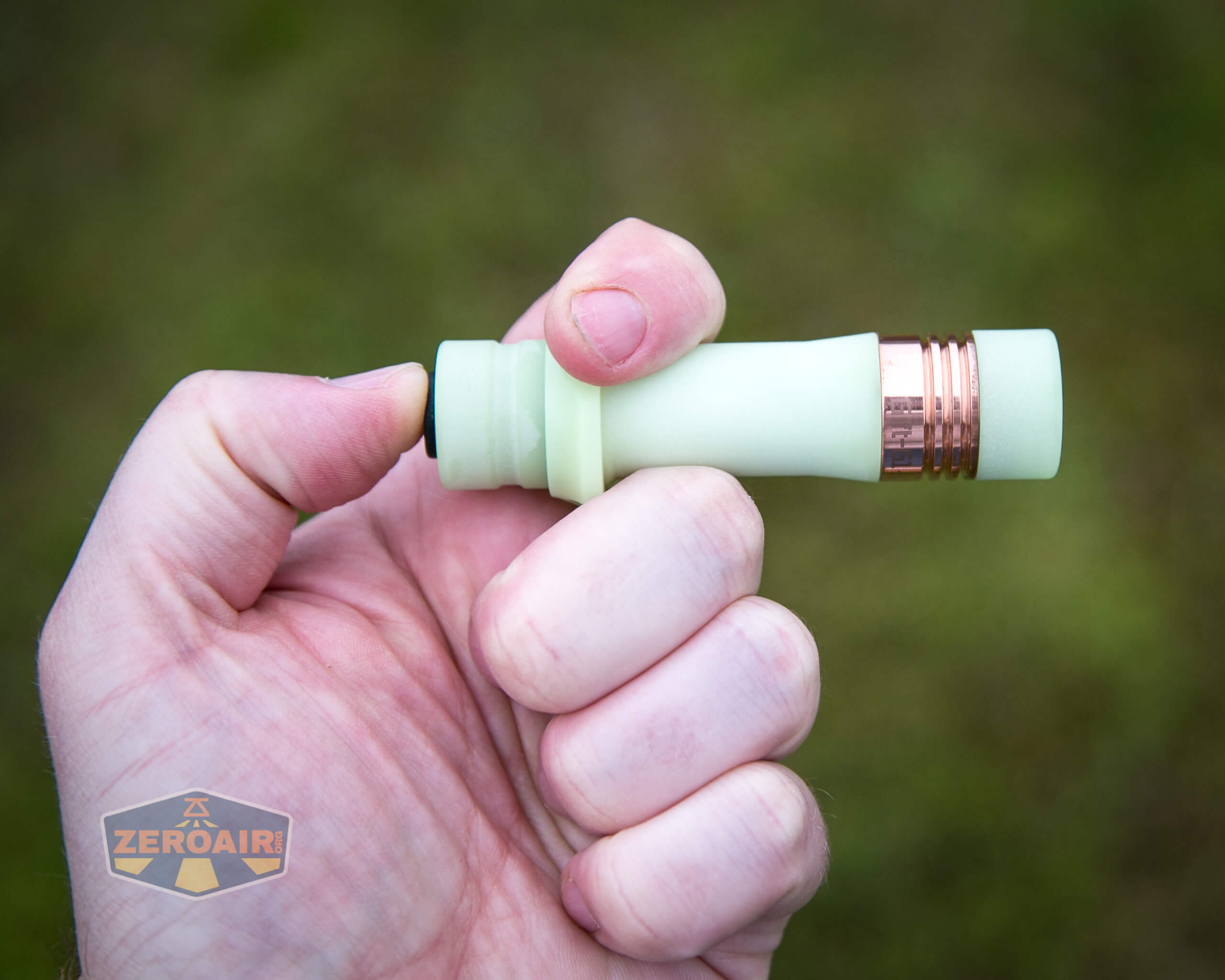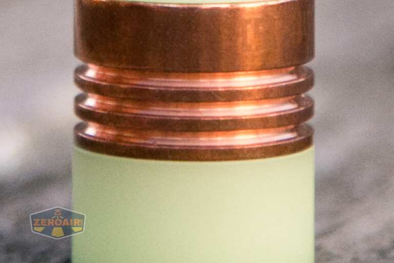 There is no knurling on the body, and aside from a divot in the tail, and the copper section, the body is nearly featureless.