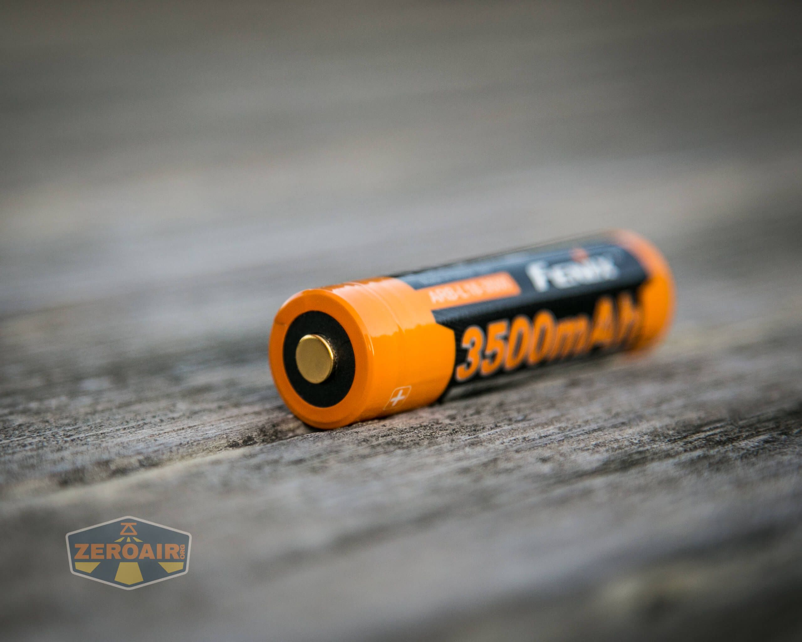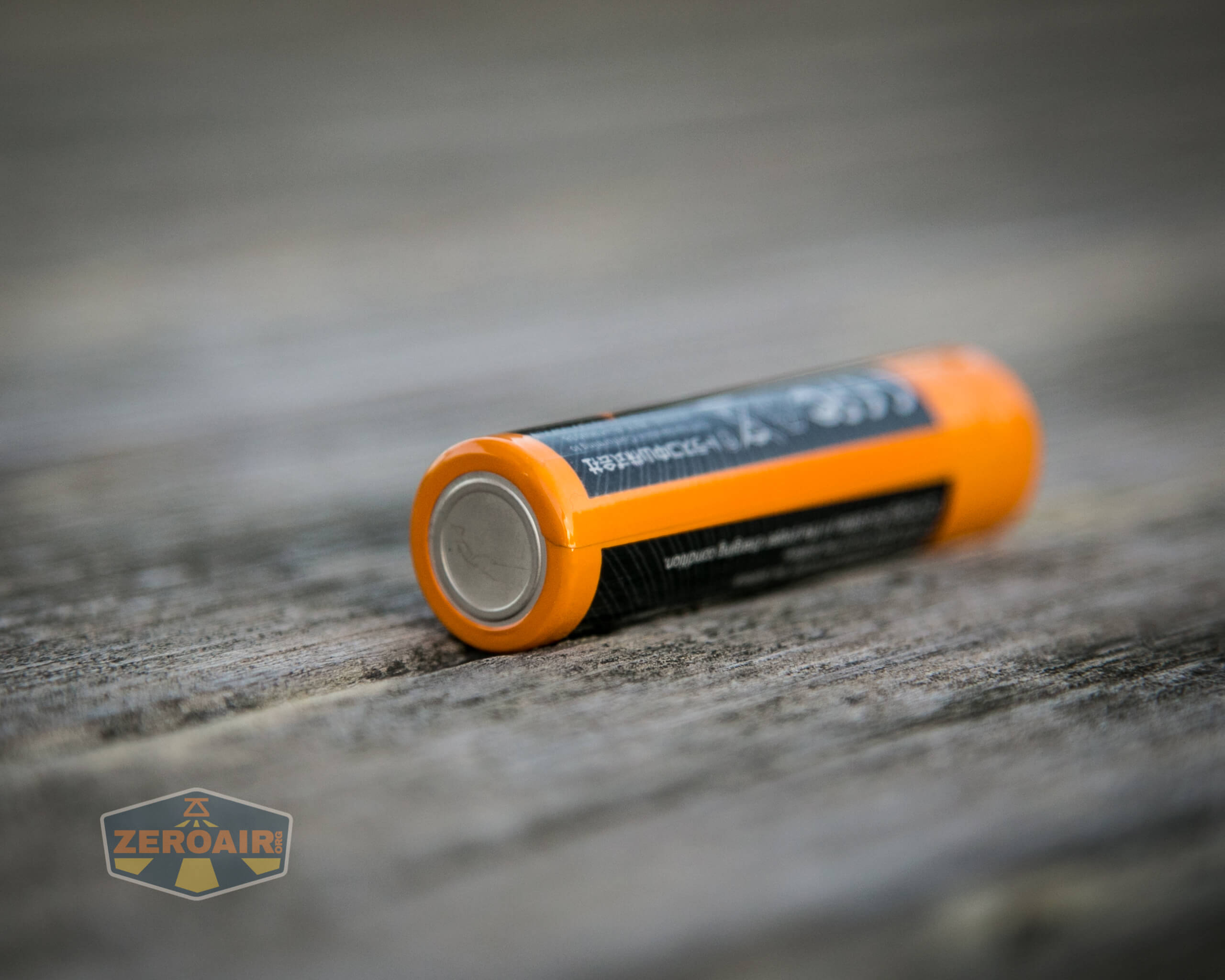 The HM65R-T is powered by a single 18650 cell, and one is included in the package. It’s a 3500mAh button top 18650.
